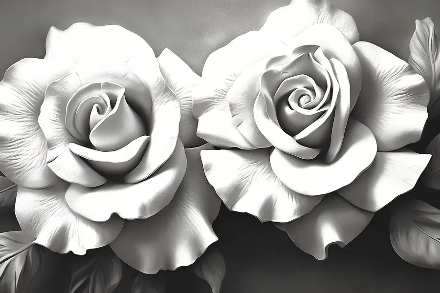 Alakítsa át terét ezekkel az elegáns falfestményekkel, amelyeken lenyűgöző rózsák láthatók lágy fehér tónusokban. Képzelje el, hogy egy olyan szobába lépve azonnal könnyedebbnek és szellősebbnek érzi magát, mintha egy lágy szellő söpört volna át rajta. Ezek a virágok nyugodt hátteret teremtenek, így tökéletesek a hangulatos összejövetelekhez vagy egy könyvvel töltött csendes pillanatokhoz. A fény és árnyék finom játéka minden egyes sziromnak saját életet ad, szinte mintha édes semmiségeket suttognának. Legyen szó nappaliról, hálószobáról vagy egy nyugodt álmodozósarokról, ez a falfestmény olyan kegyet és melegséget kölcsönöz, amely egyszerűen minden napot különlegessé tesz.