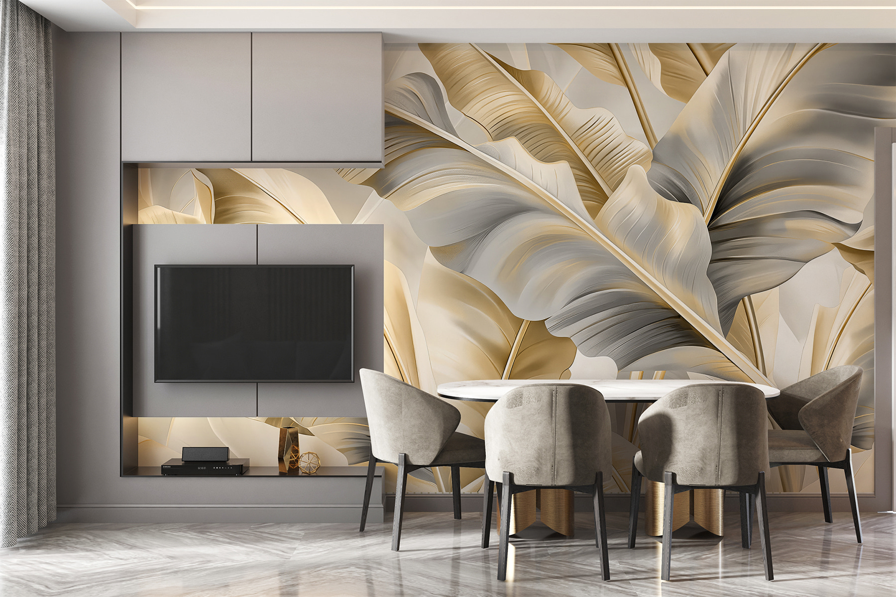 Nem alkalmazunk tömeggyártási módszereket. Ehelyett nagy formátumú nyomtatási technológiát használunk, hogy kifejezetten az Ön megrendelésére készített képet készítsünk, figyelembe véve az Ön összes igényét. Ennek eredményeképpen a tapétát gondosan csomagolt tekercsekben szállítjuk, beépítésre készen.