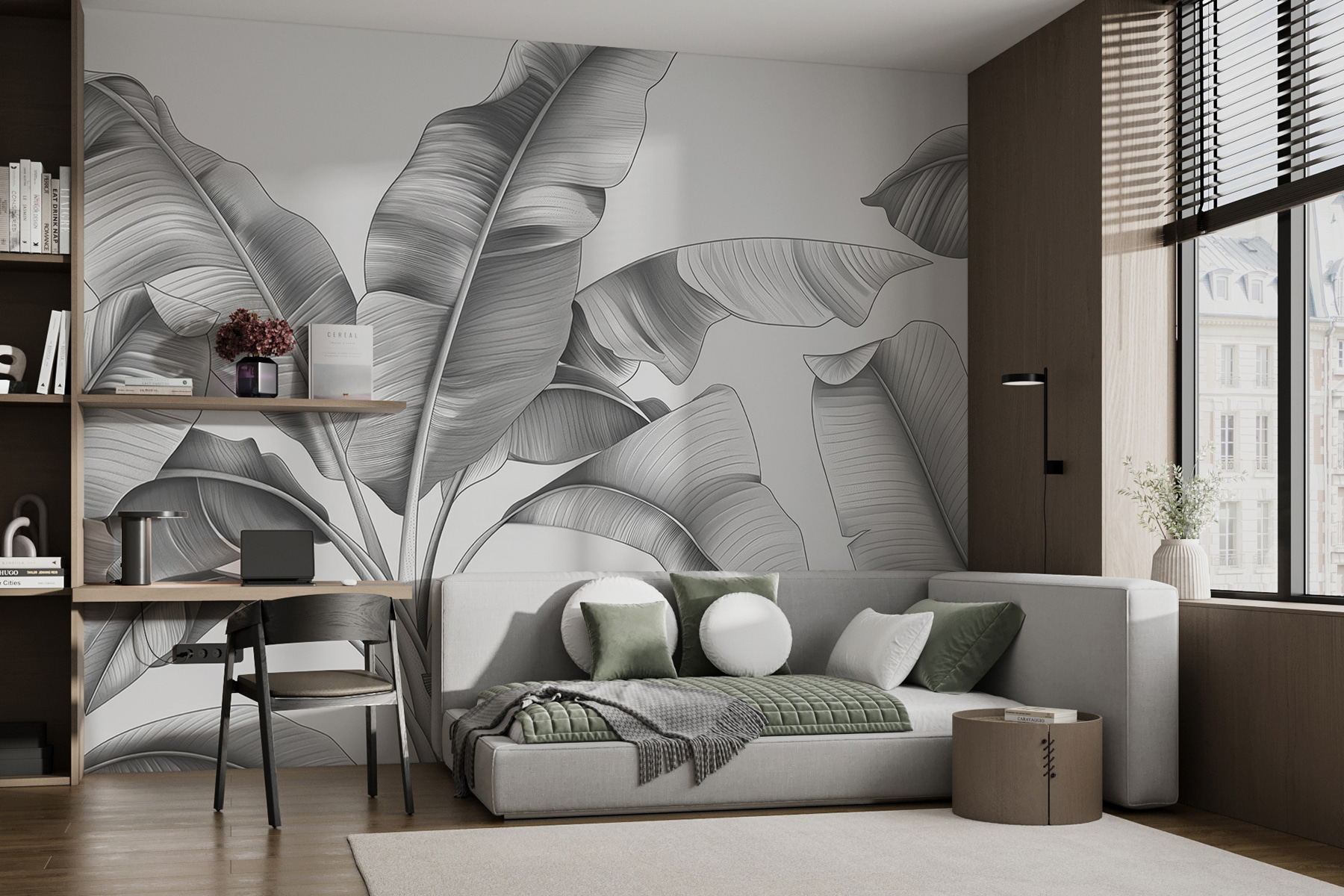 Ez a hűvös szürkeárnyalatos hangulat, ami sokoldalúan alkalmazható szinte bármilyen stílusú helyiségben – a modern nappalitól a nyugodt hálószobáig. Ráadásul a 3D-s hatás olyan mélységet kölcsönöz, hogy azon kapod magad, hogy a levelek megérintéséért nyúlsz! Komolyan, van valami megnyugtató abban, ha lombok veszik körül az embert – leszámítva persze az öntözést és a bogarakat.