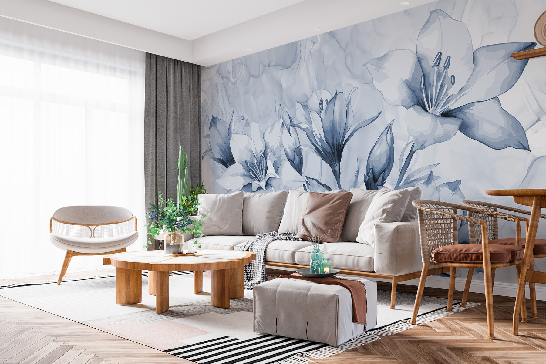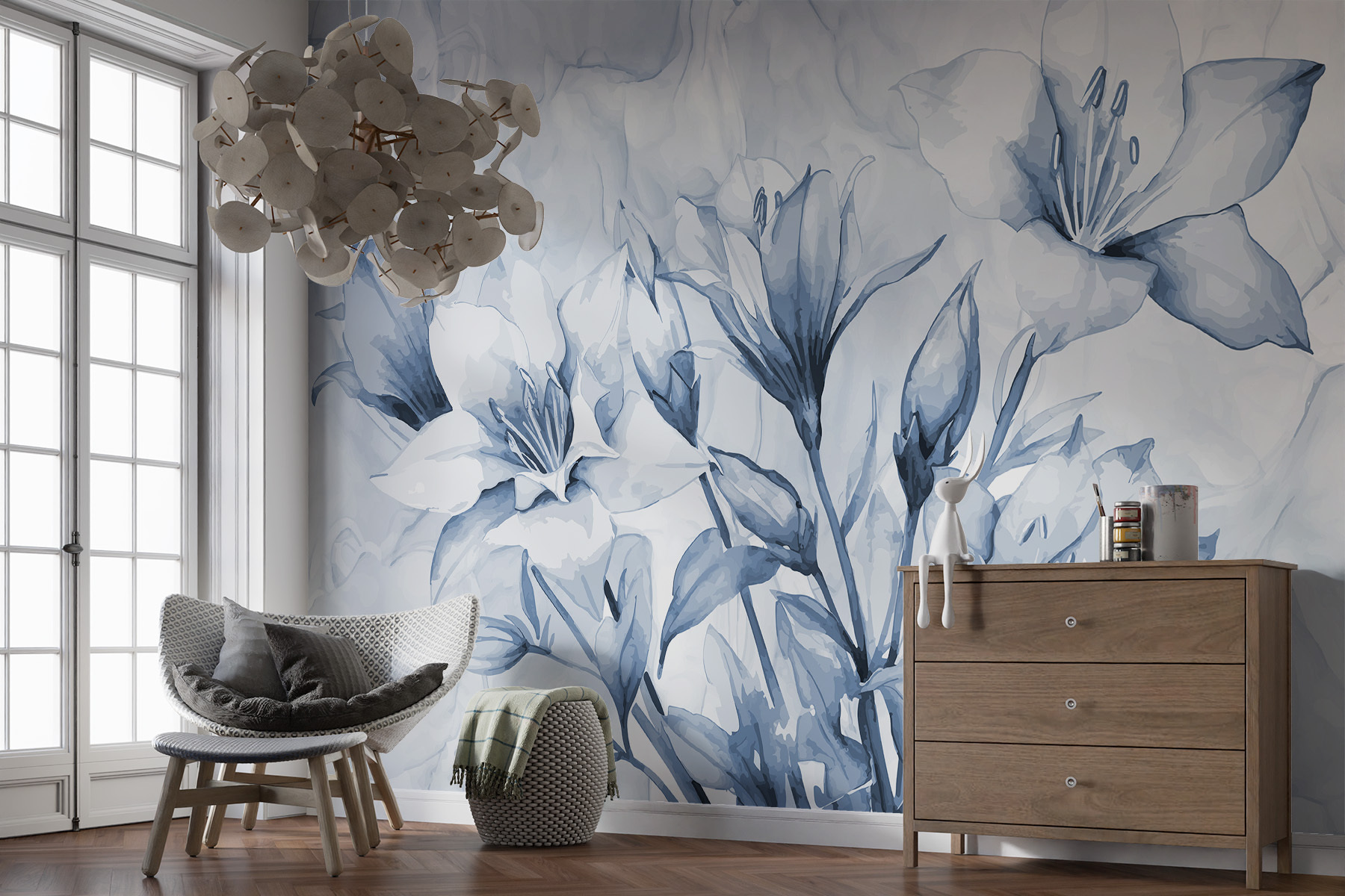 Tökéletes a természet szerelmeseinek, vagy bárkinek, aki a modern stílus és egy kis művészi érzék keveredését kedveli! Legyen szó egy hangulatos hálószobáról vagy egy világos, szellős előszobáról, ez a falfestmény olyan, mint egy lágy szellő, tele békés vibrálással és csendes szépséggel. Mintha minden egyes virág arra hívna, hogy pihenj, vegyél egy nagy levegőt… talán még álmodozol is egy kicsit. Bónusz? Teljesen megduplázza a beszélgetés indítóját – a vendégek nem fogják abbahagyni a csodálását!