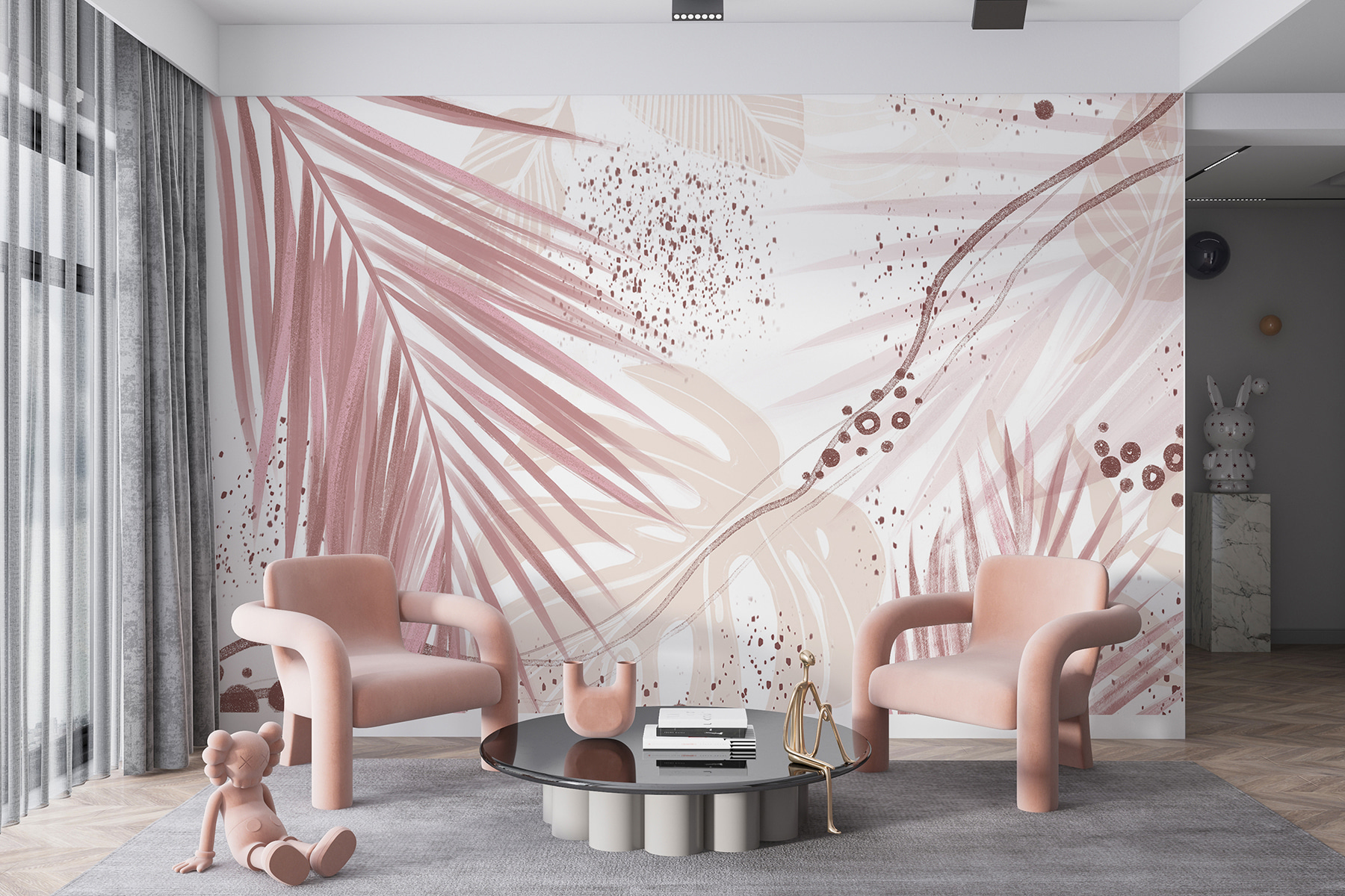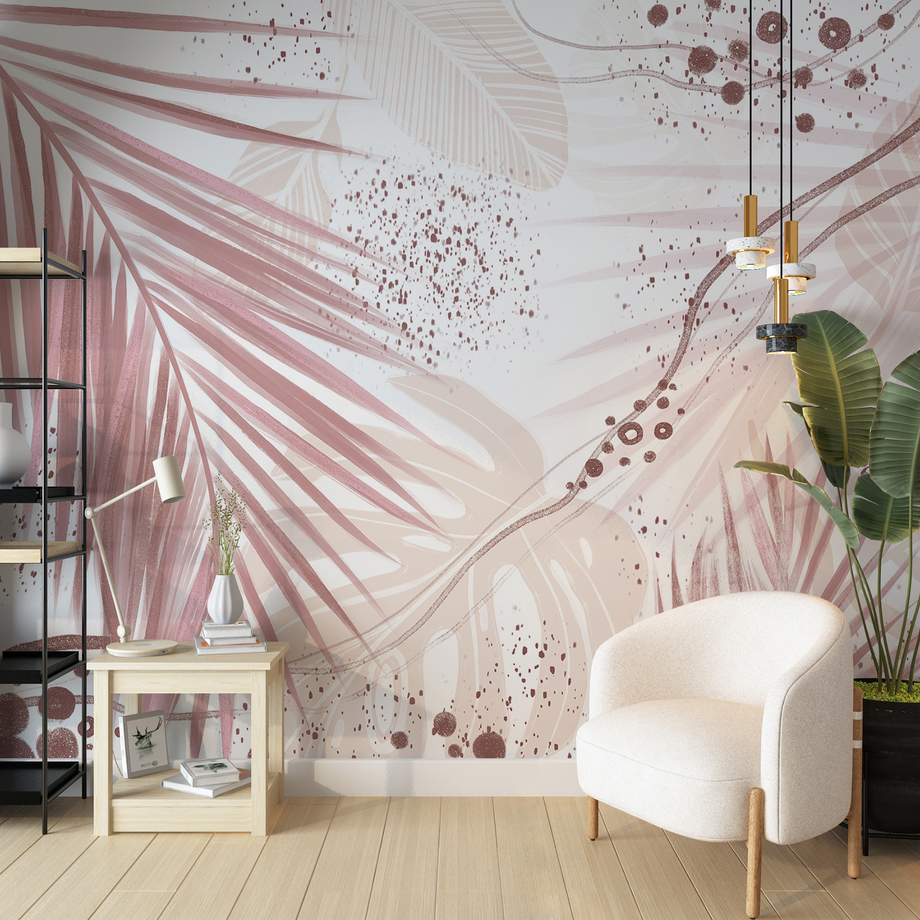 A bonyolult pálmalevelek és absztrakt minták keverednek a gyengéd rózsaszínnel és földszínekkel… ez a természet szerelmeseinek álma! Tökéletes, ha egy kis hangulatot szeretne vinni a nappaliba, hálószobába vagy akár az otthoni irodába. Mit ér az élet egy kis kreativitás nélkül? Minden alkalommal, amikor belépsz a szobába, olyan, mint egy gyengéd ölelés az anyatermészettől – egy kis menekülés a mindennapi nyüzsgésből.