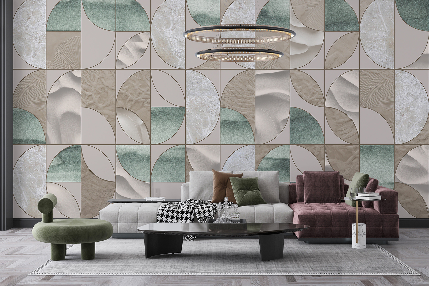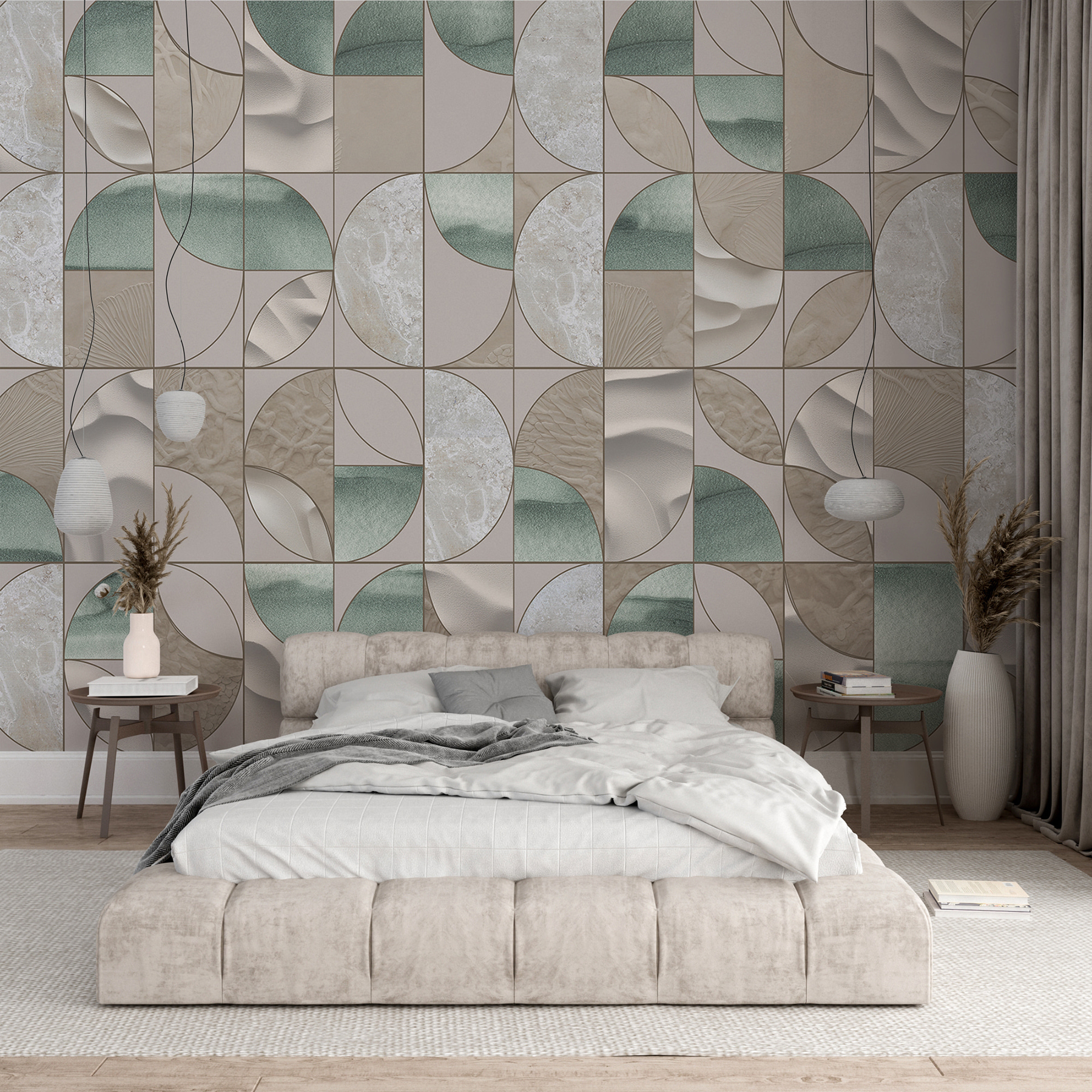 - Különböző színű tapéta különböző csempéken