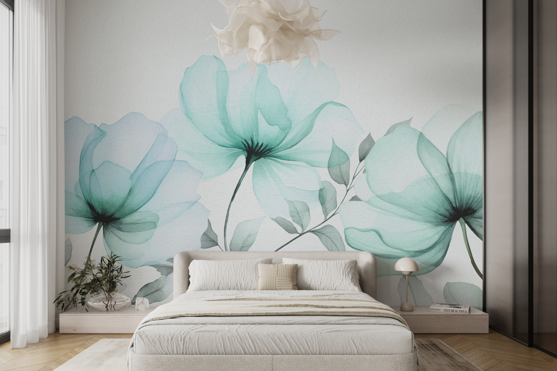 Alakítsa át terét ezzel a lenyűgöző falfestménnyel, amely finom virágokat ábrázol lágy árnyalatokban. Képzelje el, hogy minden nap az akvarellek szelíd szépségére ébred, amely zökkenőmentesen illeszkedik a nyugtató háttérbe. Olyan, mintha saját békés kertje lenne közvetlenül a falon – a bosszantó pollenek nélkül! Ez a falfestmény nyugodt hangulatot áraszt, és tökéletes a hangulatos olvasósarokba vagy a nyugodt otthoni irodákba. A barátok el fognak ájulni a könnyed eleganciától, és csendes beszélgetéseket kezdeményezhetnek az egyszerűségben rejlő szépségről. Ez több mint dekoráció; ez egy élmény.