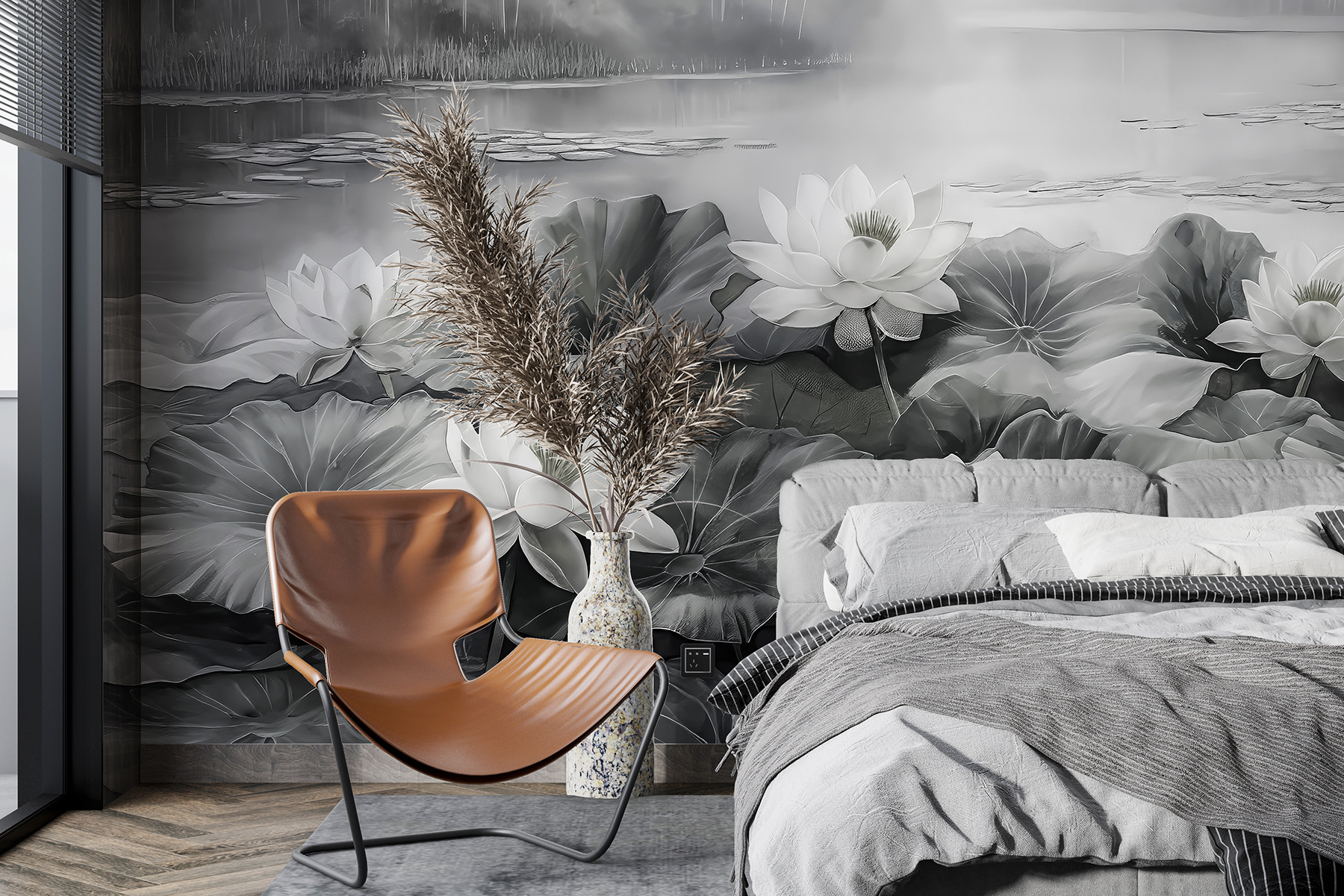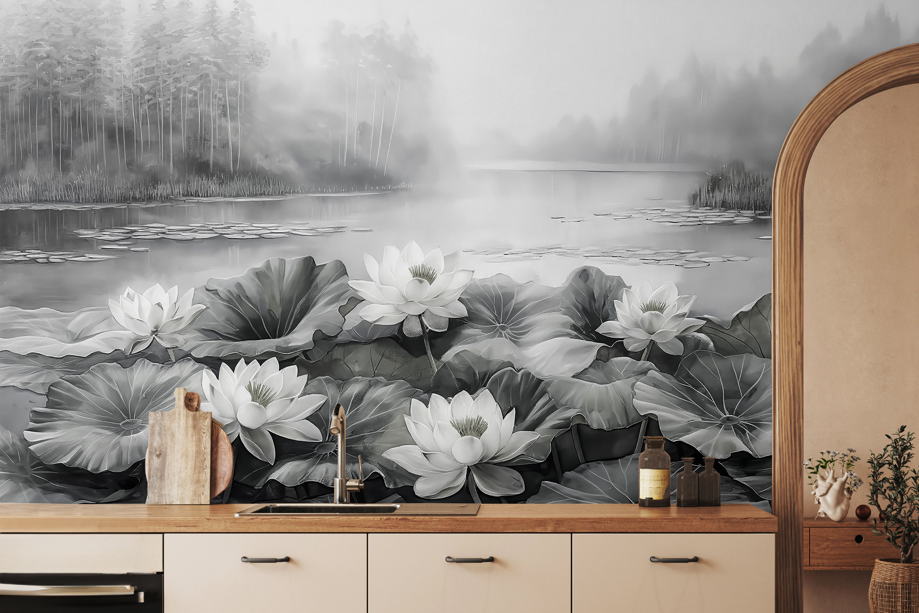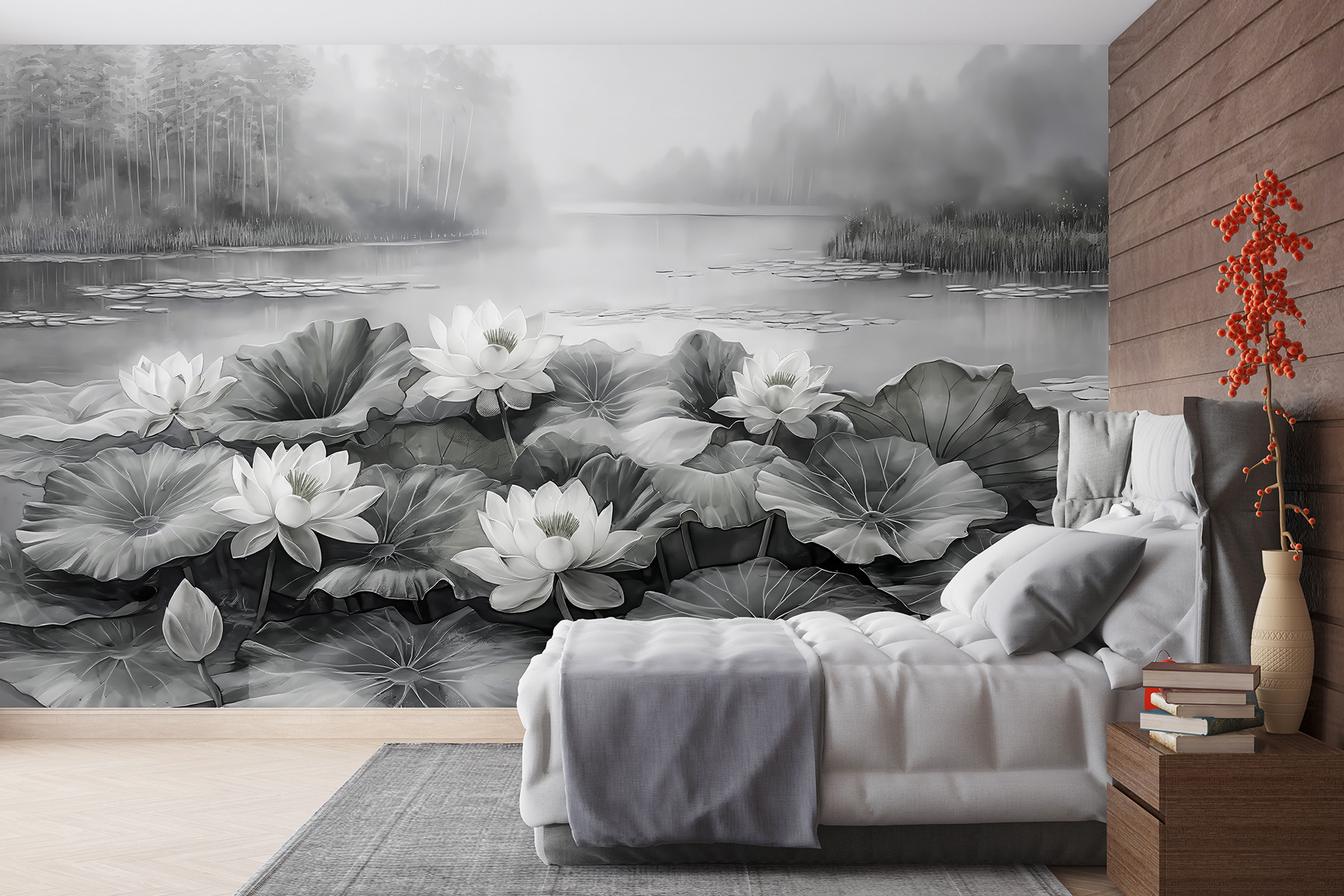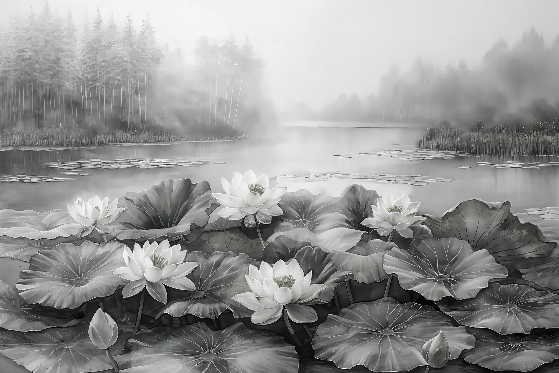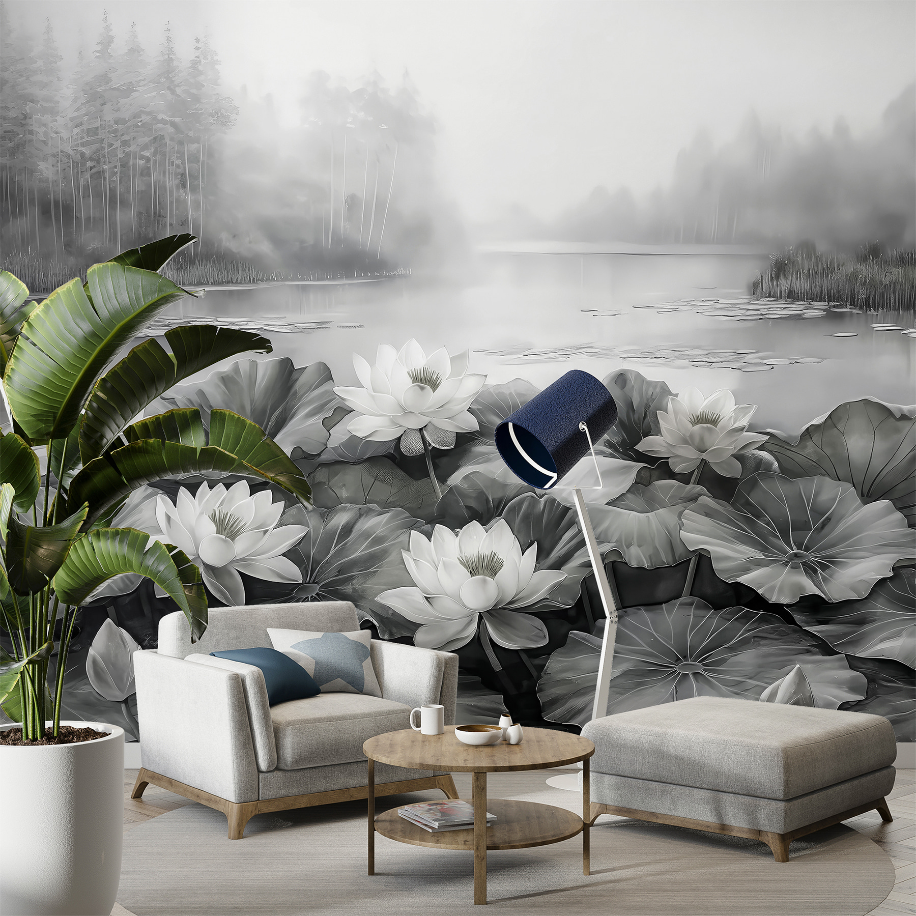 Alakítsa át ezt a sima falat nyugodt meneküléssé ezzel a lenyűgöző falfestménnyel, amelyen fehér virágok táncolnak egy nyugodt tavon. Képzelje el, ahogy hazaérkezik, lerúgja a cipőjét, és a virágok lágy eleganciája fogadja. Van valami megnyugtató abban, ahogy a lágy hullámzás és a ködös háttér a nyugalom érzetét kelti – tökéletesen alkalmas egy hosszú nap utáni kikapcsolódásra. Akár egy hangulatos nappaliban, akár egy nyugodt hálószobában, ez a falfestmény egy kis természetet hoz a belső térbe, és egy békés visszavonulás érzetét kelti. Ki ne szeretné ezt? Gondoljon csak azokra a pillanatokra, amelyeket a szépségben elmerülve tölthet el – talán egy csésze csendes tea mellett, vagy egy jó könyvben elmerülve. Olyan, mintha a természet egy darabkája lenne otthonunkban, amely egy kis nyugalmat csempész a mindennapokba.