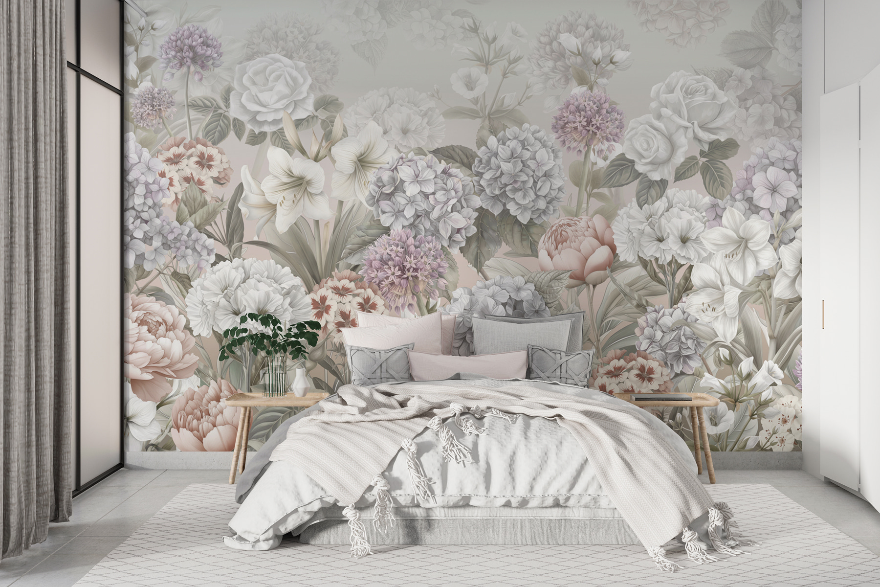 Ez a falfestmény, amelynek címe “Fotótapéta w08140”, olyan, mintha egy álomszép kertbe lépnél be otthonodban. Képzelje el, ahogy belép a szobájába, és lágy, nyugtató árnyalatú bazsarózsák, rózsák és hortenziák buja sora fogadja. Olyan, mint egy csokor, amely soha nem hervad el! A bonyolult részletek és a finom színek szinte olyan érzést keltenek, mint egy vintage képeslap. Ez nem csak egy dekorációs darab; ez egy hangulatnyugtató, frissítő és ó-csodaszép. Tökéletes ahhoz, hogy egy kis természetet hozzon a beltérbe, pollen és öntözés nélkül. Marie az utca végéről? Esküszik rá, hogy megváltoztatta a helyisége egész hangulatát. Feküdj le egy jó könyvvel, és vessz el ebben a virágos paradicsomban!