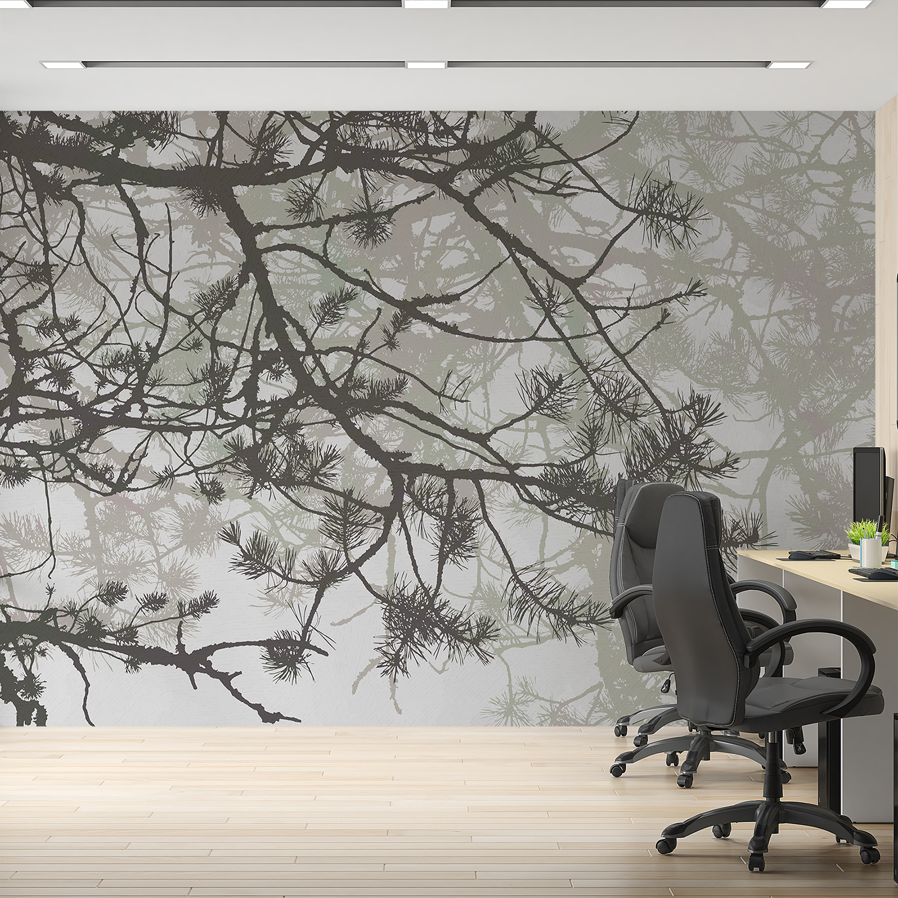 Változtassa át terét egy nyugodt erdei menedékké ezzel a varázslatos, finom tűlevelekkel díszített faágakból álló falfestménnyel. Képzelje el, hogy minden nap egy hangulatos faházba lép, még akkor is, ha csak a nappalijában van. Az árnyékok és a fény szelíd játéka nyugtató hangulatot áraszt, amely tökéletes a pihenéshez vagy a következő túráról való álmodozáshoz. Szinte olyan, mintha a bogarak nélkül hozná be a külvilágot a házba! Ráadásul remek módja annak, hogy beszélgetéseket kezdeményezzen a természetről, a fákról, vagy akár arról a rosszul sikerült kempingezésről. Fogadja el a szabadban való érzést, és hagyja, hogy a fala meséljen egy történetet.