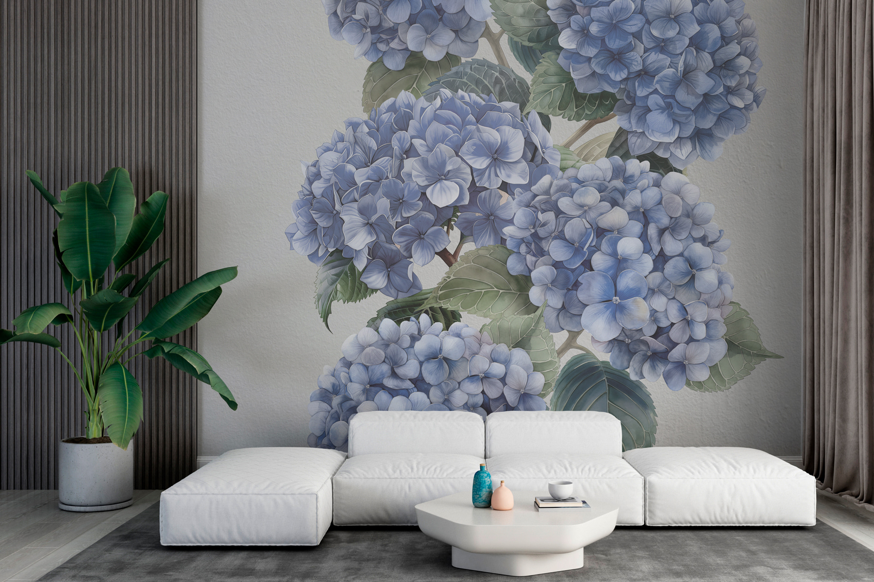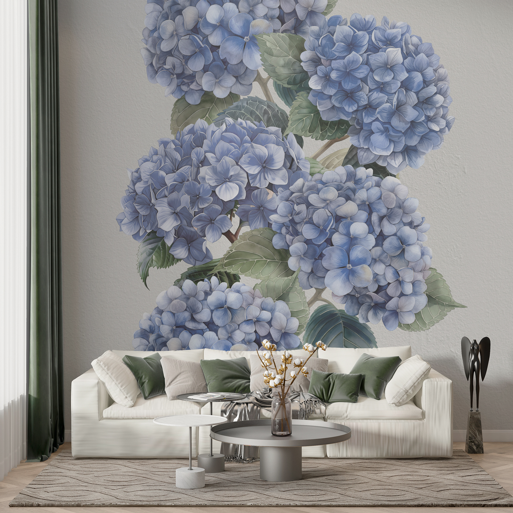 Bármelyik szobát nyugodt kerti oázissá varázsolhatja ezzel a lenyűgöző falfestménnyel, amelyen kék hortenziák nyílnak finom virágzásban. Képzelje el, hogy egy olyan térbe lép, amely azonnal feldobja a hangulatát, ahol minden egyes szirom mintha egy nyári nap titkait suttogná. Olyan, mintha a természet egy kis darabkája lenne a falon. A lágy árnyalatok és a bonyolult részletek szelíd nyugalmat árasztanak, és tökéletesek hangulatos sarkokba vagy élénk gyülekezőhelyekre. Barátai csodálkozni fognak az egyedi dekorációs választásán, és ki tudja, talán valakit arra inspirál, hogy kertészkedni kezdjen – vagy legalábbis egy kicsit jobban értékelje a virágok szépségét! Ez a falfestmény tökéletes a természet és a művészet szerelmeseinek egyaránt, és frissítő csavart ad bármely belső térnek.