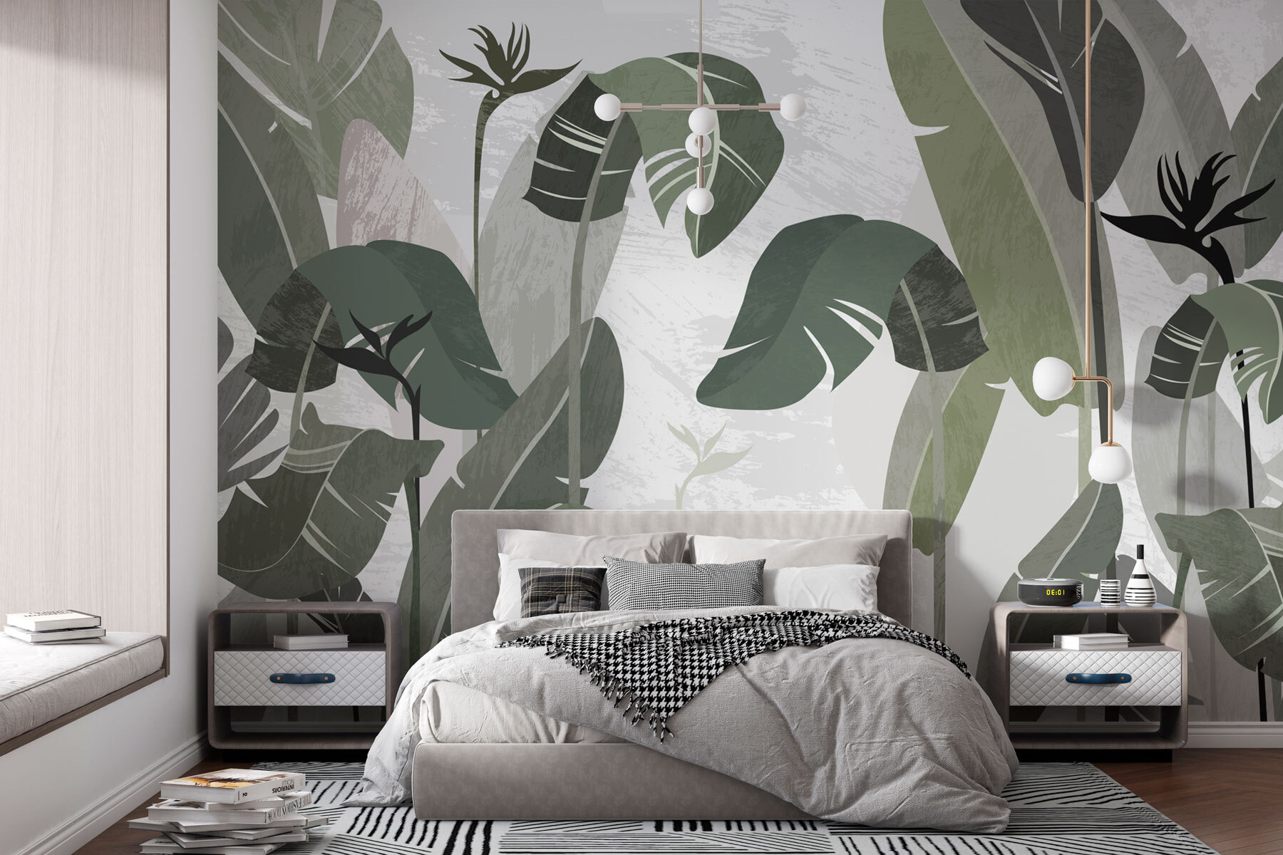 A “Trópusi levelek stílusos árnyalatokban” falfestmény segítségével bármelyik szobát nyugodt oázissá varázsolhatja. Képzeld el: belépsz a helyiségedbe, és bumm! Ezek a túlméretezett levelek hangulatos, mégis frissítő hangulatba burkolnak. A tompa zöldek és a lágy tónusok szinte suttogva sugározzák a természet nyugalmát, így nappalija egy napsütötte menedékhelynek tűnik. Képzelje el, ahogy a reggeli kávéját kortyolgatja, körülvéve ezzel a buja háttérrel. Ez nem csak dekoráció; ez egy menekülés. Tökéletes a meghitt estékhez vagy a vidám összejövetelekhez. Ezzel a falfestménnyel a fala nem csak egy fal lesz, hanem egy történetet fog mesélni.