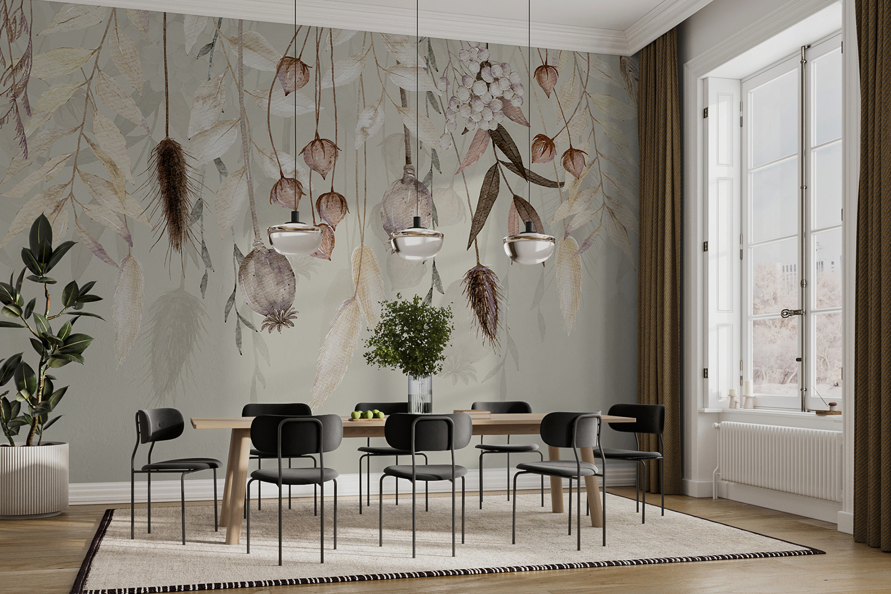 Képzelje el, ahogy egy mozgalmas nap után lazít – a szelíd levelek és az elegáns virágok arra hívják, hogy lazítson, lélegezzen mélyeket… engedje el magát. Ez szinte olyan, mintha a természet szépségének suttogása lenne, amely minden helyiséget frissé és barátságossá tesz. És ezek a részletek? Olyan bonyolult és lágy, mintha egyenesen egy álomszép erdei tisztásról szedték volna le őket.