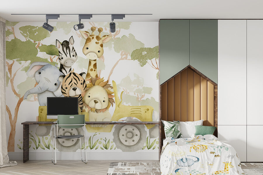 Ó, nézd ezt az imádnivaló “Fotótapéta w08233” nyomtatást! Olyan, mintha egy szeszélyes szafari kelne életre, ott a faladon. Tökéletes mindenkinek, akinek fontos a játékos, vidám hangulat – különösen, ha állatbarát vagy! Képzeld el ezt a mókás kalandorcsapatot – egy elefánt, egy zebra, egy tigris, egy oroszlán és egy zsiráf -, amely minden napot egy mini dzsungel-expedíciónak érezhetsz.