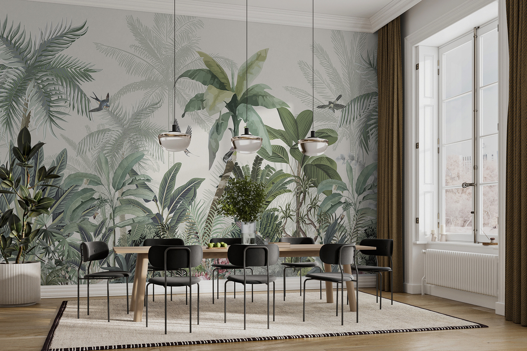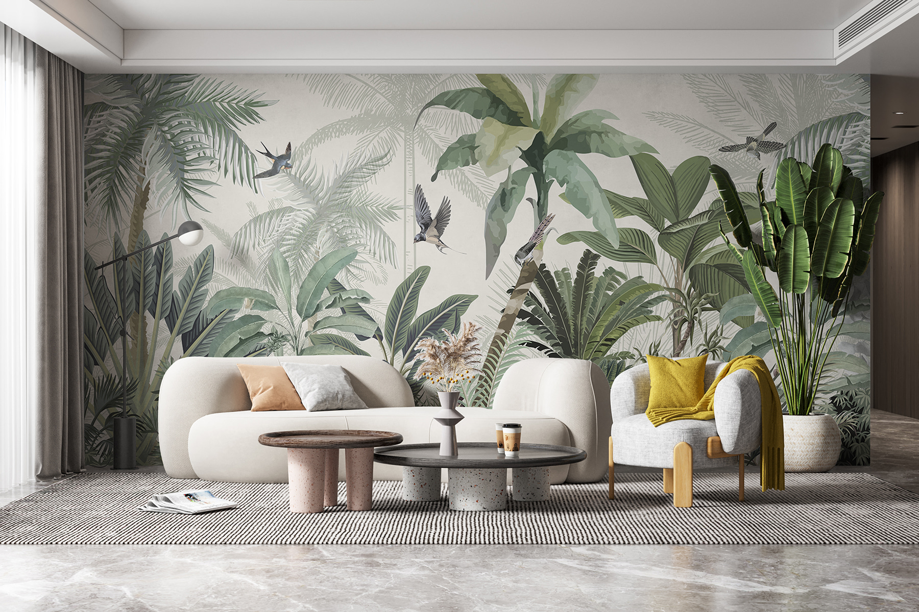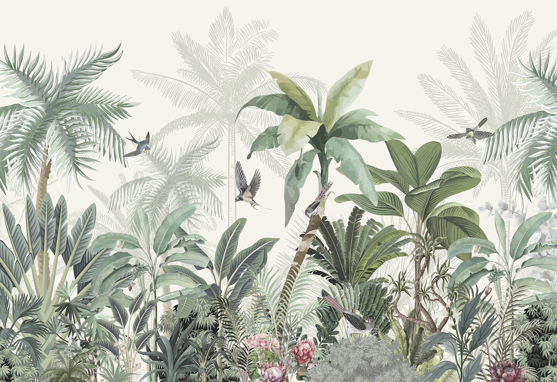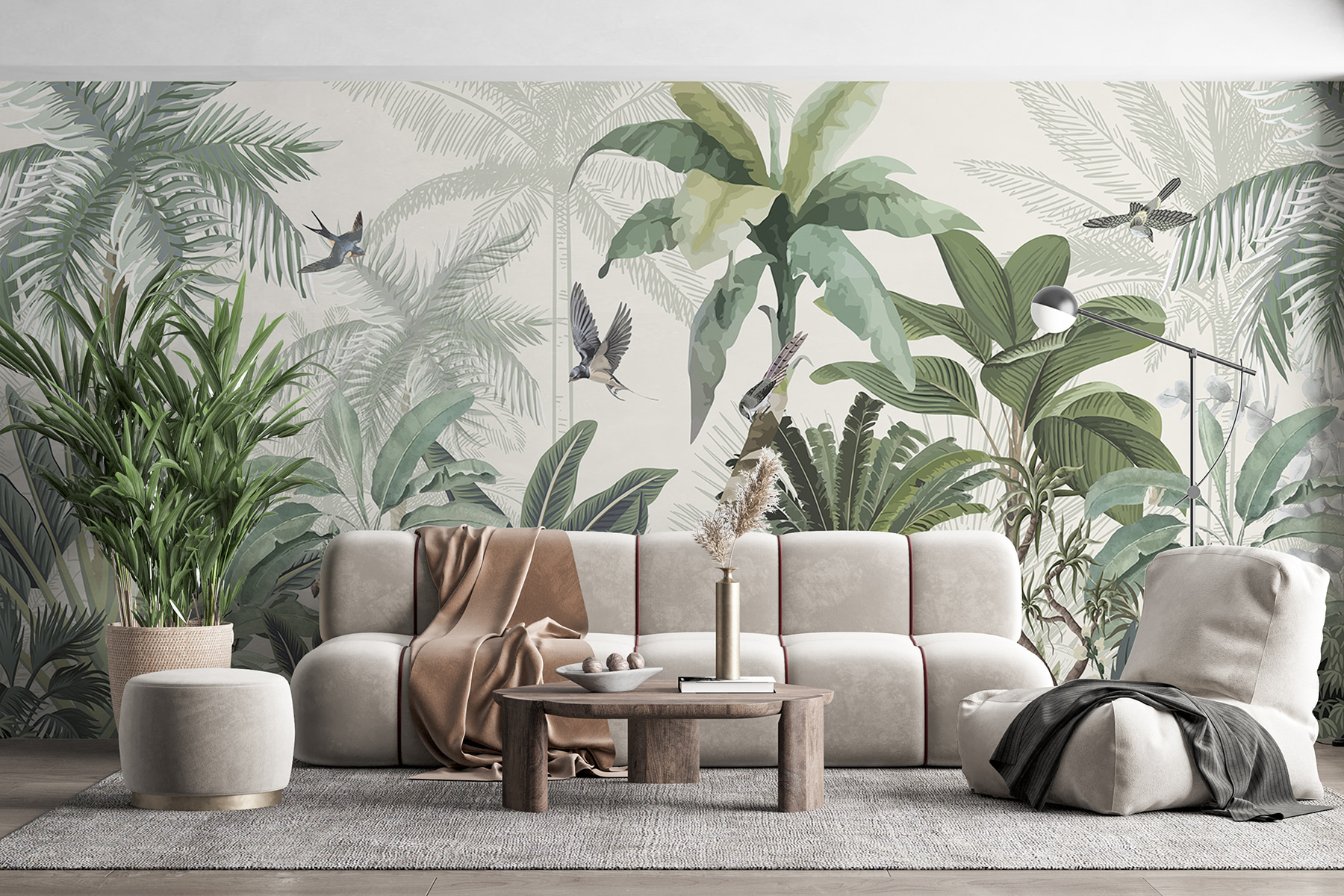 Ezzel a lenyűgöző falfestménnyel bármilyen teret trópusi paradicsommá varázsolhatsz. Olyan, mintha egy darab dzsungel lenne otthonodban, buja zölddel és vidám madarakkal. Képzelje el, ahogy a reggeli kávéját kortyolgatva lágy, trópusi hangulat fogadja – komolyan, lehet ennél jobb módja a nap indításának? Ez a tapéta nem csak a szobát változtatja meg, hanem a természetet is behívja a házba, szellős délutánokról és napfényben fürdő kalandokról suttogva. Tökéletes a nappaliba vagy akár egy hangulatos olvasósarokba, egy kis menekülés közvetlenül a falakon. Minden pillantás olyan érzés, mint egy mini vakáció, közvetlenül az otthon kényelméből.