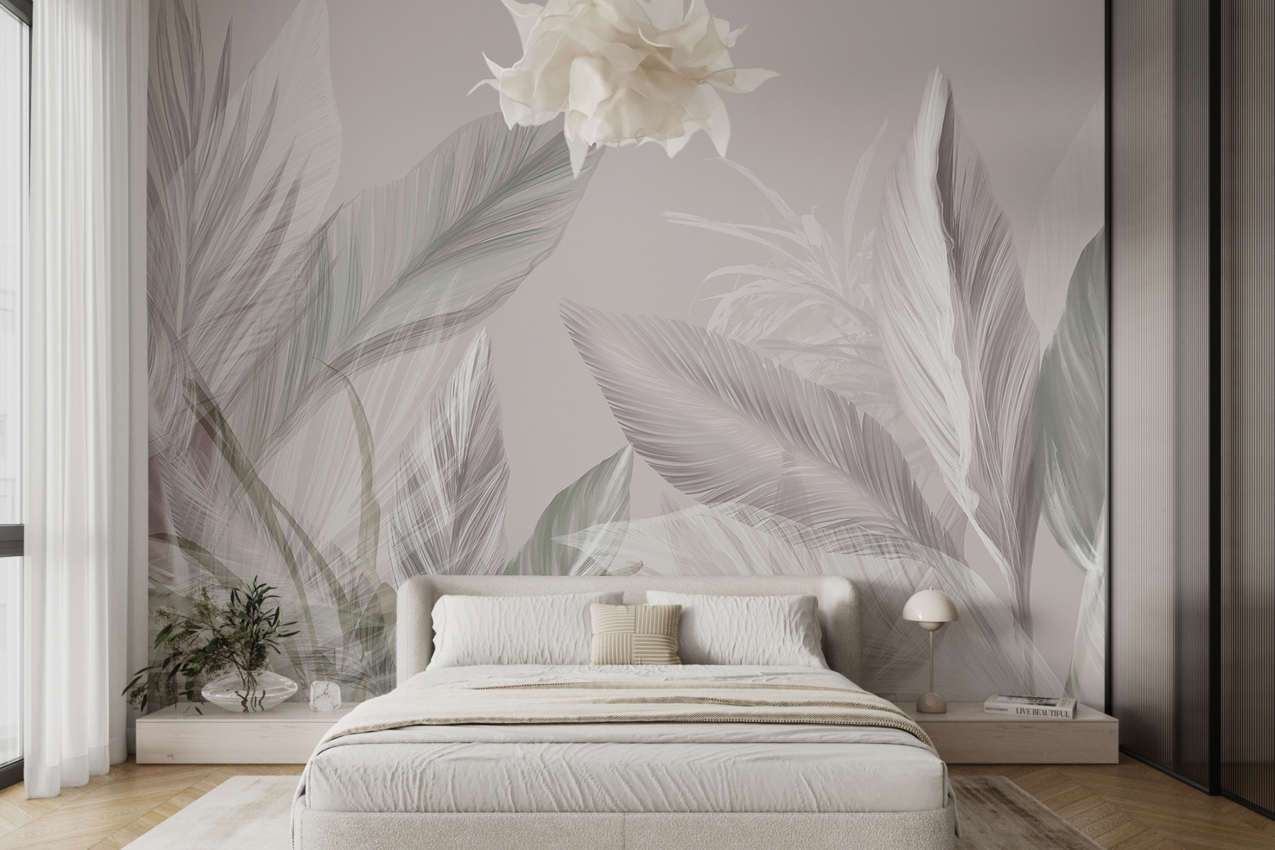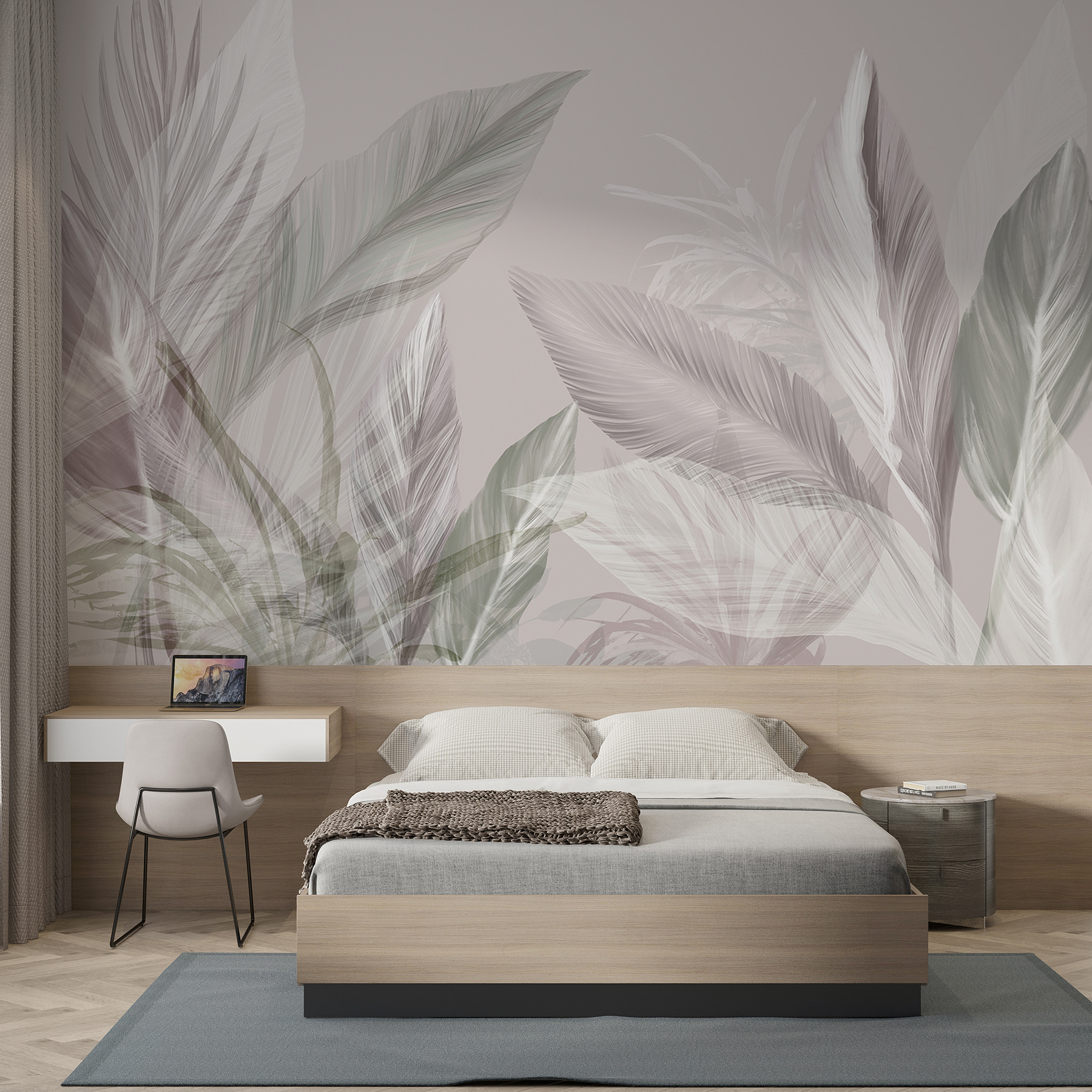 Az “Ethereal Whispers in Soft Hues” (Éteri suttogások lágy árnyalatokban) segítségével bármilyen teret nyugodt menedékké varázsolhat. Ez a falfestmény könnyedén keveri a tompa színeket és a finom lombozatot, nyugodt hangulatot teremtve, amely a pihenést suttogja. Képzelje el, hogy egy könyvvel összegömbölyödik egy ilyen szelíd levelekkel díszített szobában – olyan, mintha maga a természet ölelné át. Tökéletes a hangulatos estékhez vagy spontán táncos partikhoz a nappaliban. Ez nem csak dekoráció; ez egy olyan élmény, amelytől a vendégek azt fogják hinni, hogy az otthonod egyenesen egy dizájnmagazinból származik. Szóval hajrá, hagyja, hogy ezek a nyugtató árnyalatok életet leheljenek a falaiba!