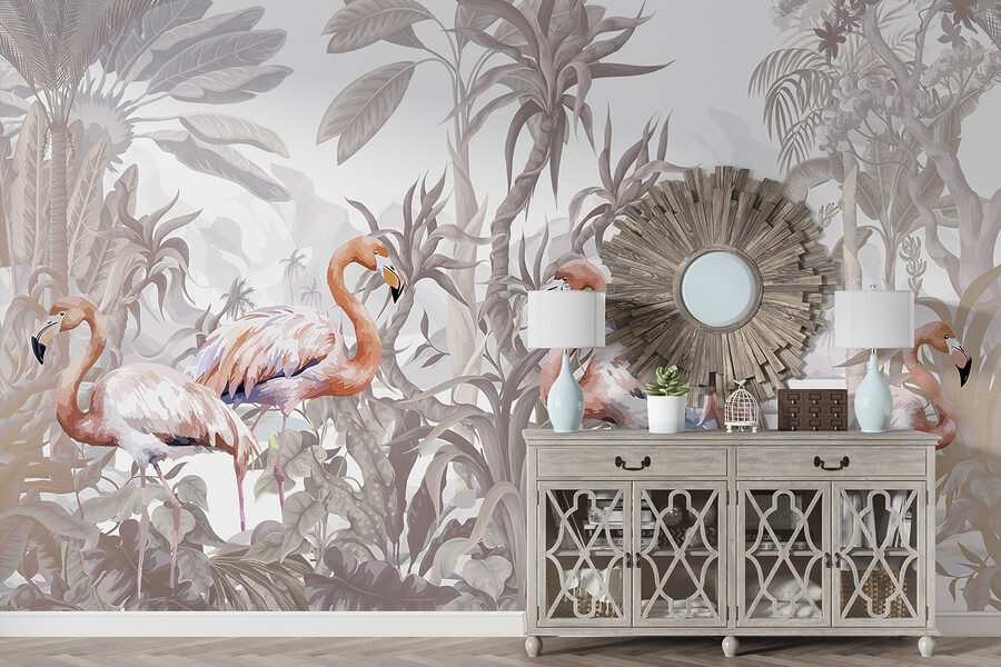Lépj be egy szeszélyes világba ezzel a flamingó falfestménnyel. Képzelje el, ahogy a reggeli kávéját kortyolgatva ezek az elegáns madarak – buja trópusi lombok között ülve – feldobják a terét. A lágy árnyalatok nyugodt hangulatot teremtenek, szinte olyan, mintha minden nap egy mini vakáción lennél. Tökéletes választás, ha a természetet szeretné feldobni nappalijában vagy hálószobájában. Olyan, mintha a paradicsom egy rejtett szelete lenne a falon. Ki gondolta volna, hogy a flamingók lehetnek az új legjobb dekorációs barátaid? A tollas kifinomultság találkozik a laza bájjal.