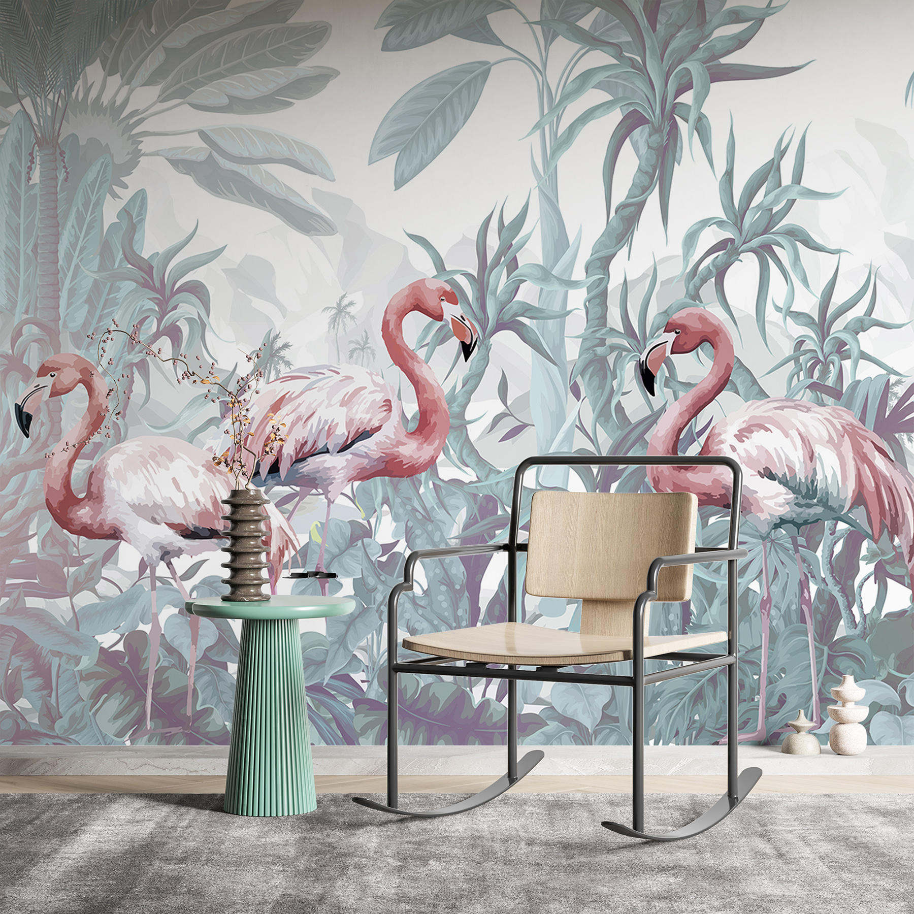 Lépj be egy vibráló világba ezzel a lenyűgöző freskóval, amely egy élénk flamingócsoportot ábrázol egy buja dzsungelben. Képzelje el: a flamingók rózsaszín árnyalatai kontrasztban állnak a trópusi zöldek tengerével, és olyan teret teremtenek, amely egyszerre nyugodt és élénkítő. Olyan, mintha egy darabka paradicsom lenne a falán, amely egy hosszú nap után kikapcsolódásra hívja. Képzelje el, ahogy a reggeli kávéját kortyolgatja a természet szépségétől körülvéve, vagy vendégül látja barátait, akik nem tudnak nem mosolyogni ezen a játékos dekoráción. Tökéletes minden olyan helyiségbe, amely szellős, trópusi hangulatra vágyik – ez a falfestmény a hétköznapi falakat kellemes meneküléssé varázsolja. Hagyja, hogy a flamingók feldobják terét és szellemét!