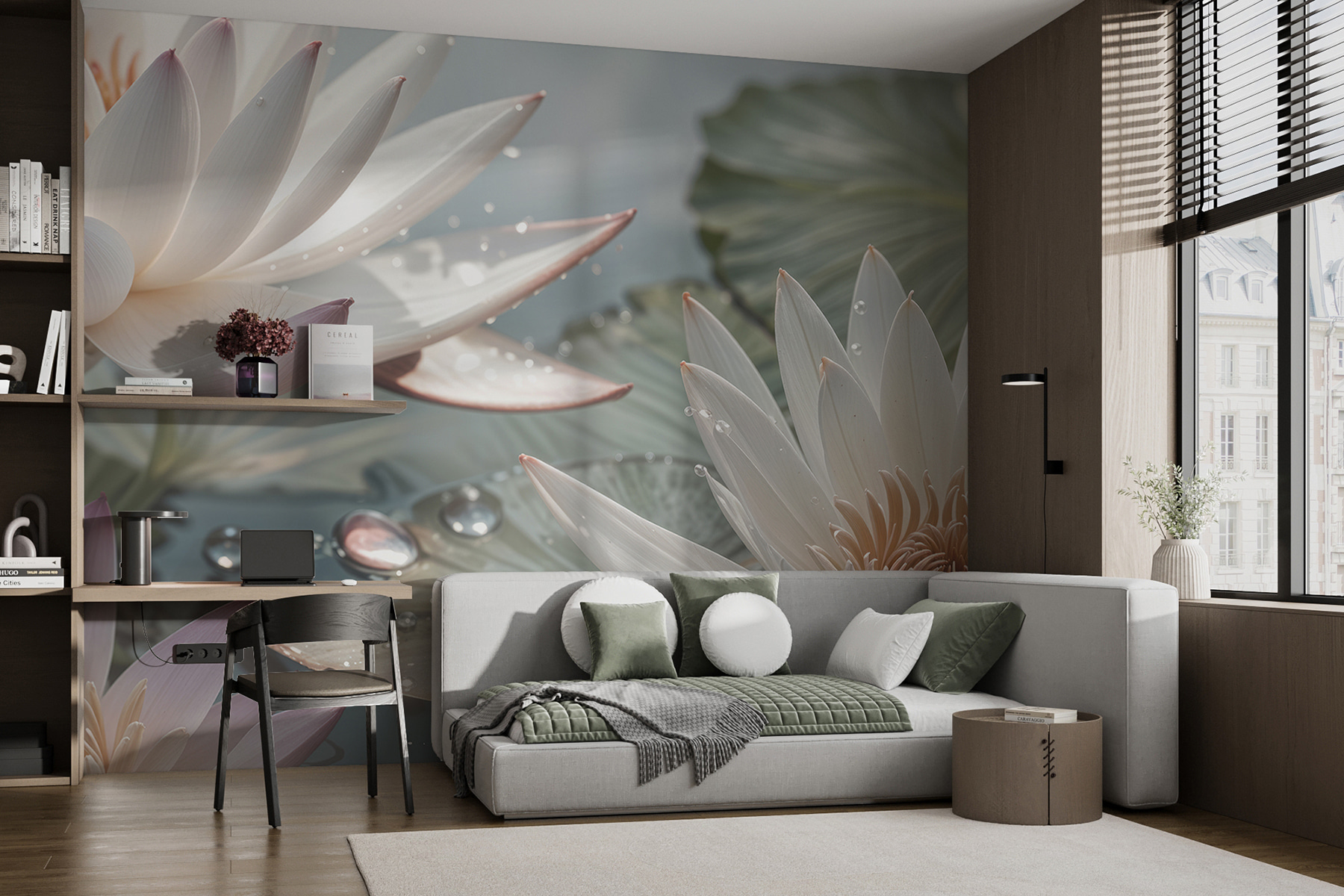 Képzelje el, hogy egy olyan szobába ébred, amely olyan, mint egy nyugodt reggel a tó partján, ahol a lótuszvirágok szikráznak a friss harmattól – valóban egy egyszerű öröm. Ez a falfestmény nem csak dekoráció; ez egy kapu a zenhez, amely még a hétfői reggeleket is egy kicsit kecsesebbé teszi. Képzelje el, ahogy egy csésze teával egy kényelmes fotelbe süllyed, és körülveszi ez a nyugodt jelenet. Ez egy kis természeti műalkotás a faladon. Tökéletes ahhoz, hogy a káoszban megtaláld a béke pillanatát – vagy legalábbis úgy tegyél, mintha megtalálnád.