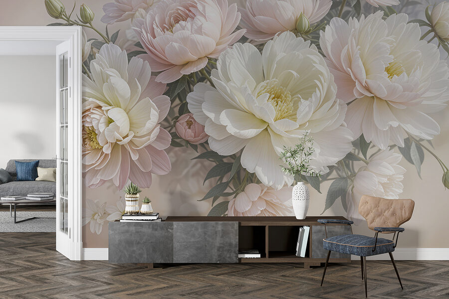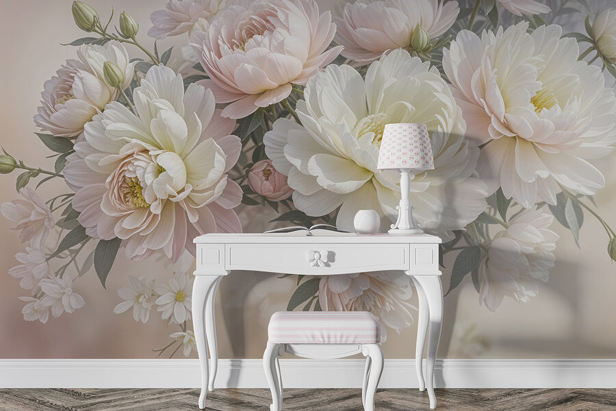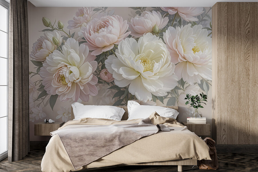 Képzelje el, ahogy belép egy szobába, és ez az álomszép, fehér és rózsaszín virágtenger fogadja – mintha egy mesebeli kertbe lépne! Ez a falfestmény csak úgy sugározza az eleganciát és a vidámságot, nem igaz? Tökéletes arra, hogy bármilyen unalmas teret derűs paradicsommá változtasson. Képzelje el, ahogy arra ébred, hogy ezek az óriási bazsarózsák lágy virágos ölelésbe burkolják. Kicsit olyan, mintha a természet úgy döntött volna, hogy letáborozik a faladon. Tökéletes az álmodozóknak és a virágok szerelmeseinek egyaránt, ez egy hangulatos művészi ölelés, amely arra vár, hogy feldobja a napodat. Csak tegyél hozzá egy kényelmes széket, egy jó könyvet, és hagyd, hogy a virágok kifejtsék varázsukat!