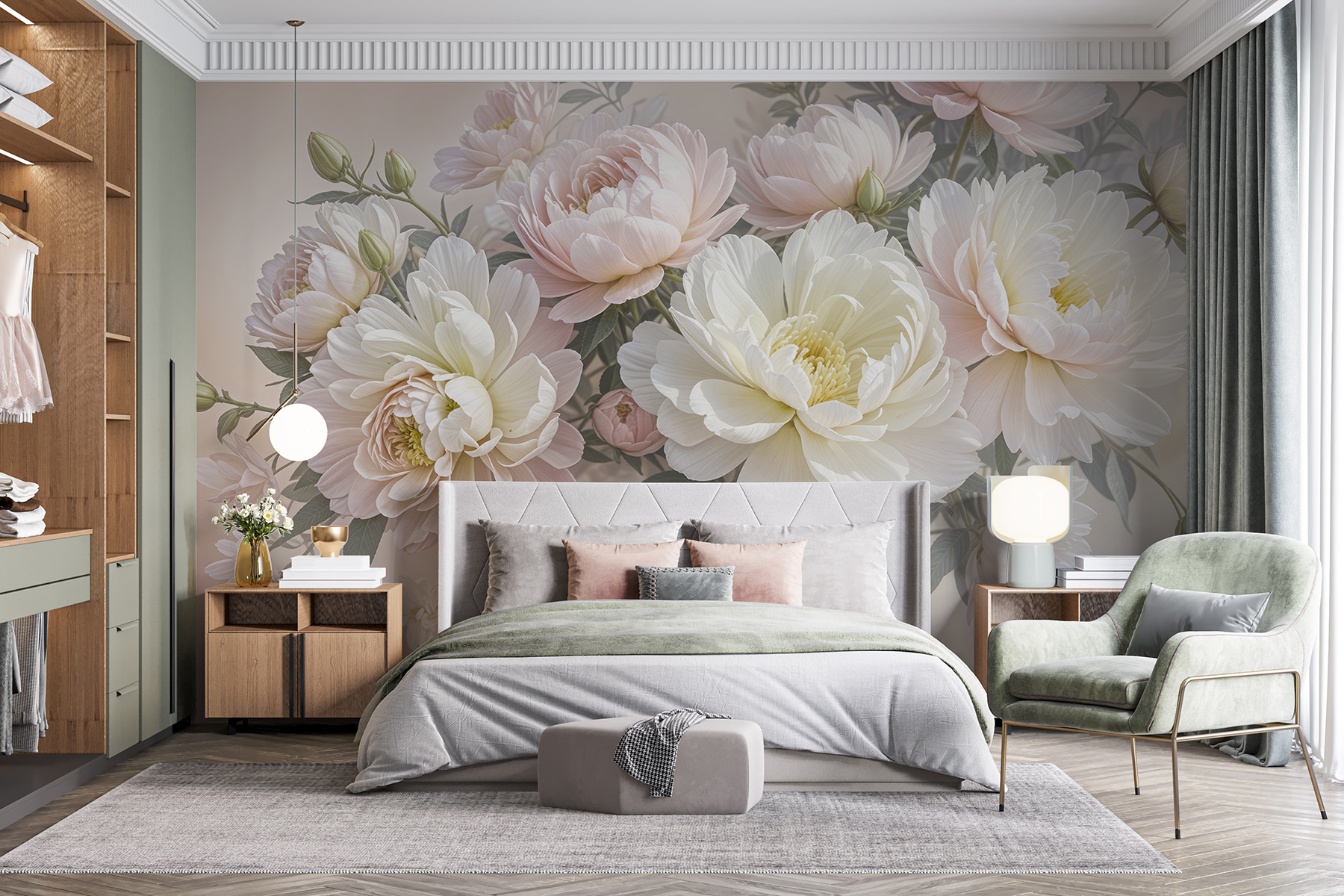 Képzelje el, ahogy belép egy szobába, és ez az álomszép, fehér és rózsaszín virágtenger fogadja – mintha egy mesebeli kertbe lépne! Ez a falfestmény csak úgy sugározza az eleganciát és a vidámságot, nem igaz? Tökéletes arra, hogy bármilyen unalmas teret derűs paradicsommá változtasson. Képzelje el, ahogy arra ébred, hogy ezek az óriási bazsarózsák lágy virágos ölelésbe burkolják. Kicsit olyan, mintha a természet úgy döntött volna, hogy letáborozik a faladon. Tökéletes az álmodozóknak és a virágok szerelmeseinek egyaránt, ez egy hangulatos művészi ölelés, amely arra vár, hogy feldobja a napodat. Csak tegyél hozzá egy kényelmes széket, egy jó könyvet, és hagyd, hogy a virágok kifejtsék varázsukat!