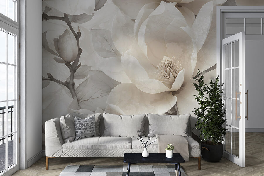 Képzelje el, hogy belép egy szobába, és úgy érzi, mintha egy békés magnóliakertbe csöppent volna, anélkül, hogy elhagyta volna a házát. Ez a lágy, tompa tónusú, elegáns magnóliákat ábrázoló falfestmény olyan, mint egy nyugtató suttogás, amely azonnal nyugalomba burkolja a teret. Tökéletes, amikor kedvenc könyvét szeretné olvasni, vagy egy csésze meleg teát kortyolgatni egy lassú délutánon. A virágok annyira élethűek, hogy talán elfelejted, hogy nem 3D-sek! Ideális mindenkinek, aki szereti a természetet, de nincs zöld hüvelykujja. Csak ígérd meg, hogy nem fogod megöntözni!