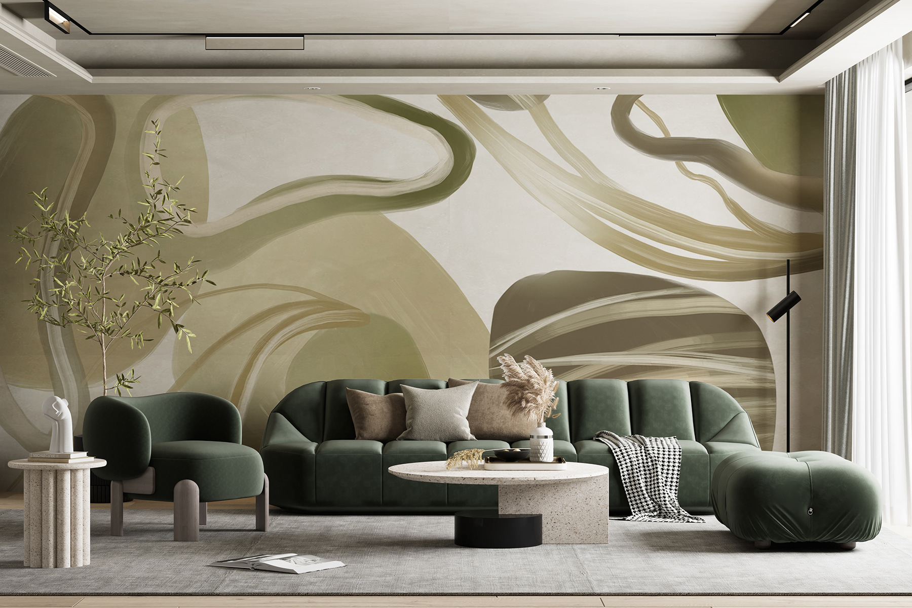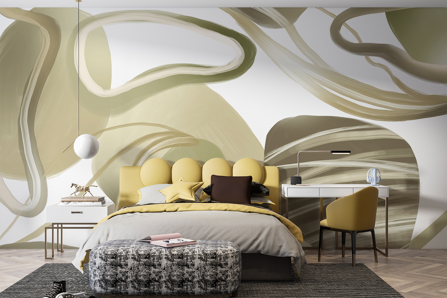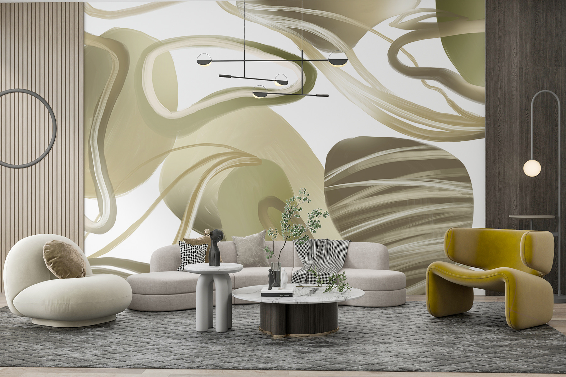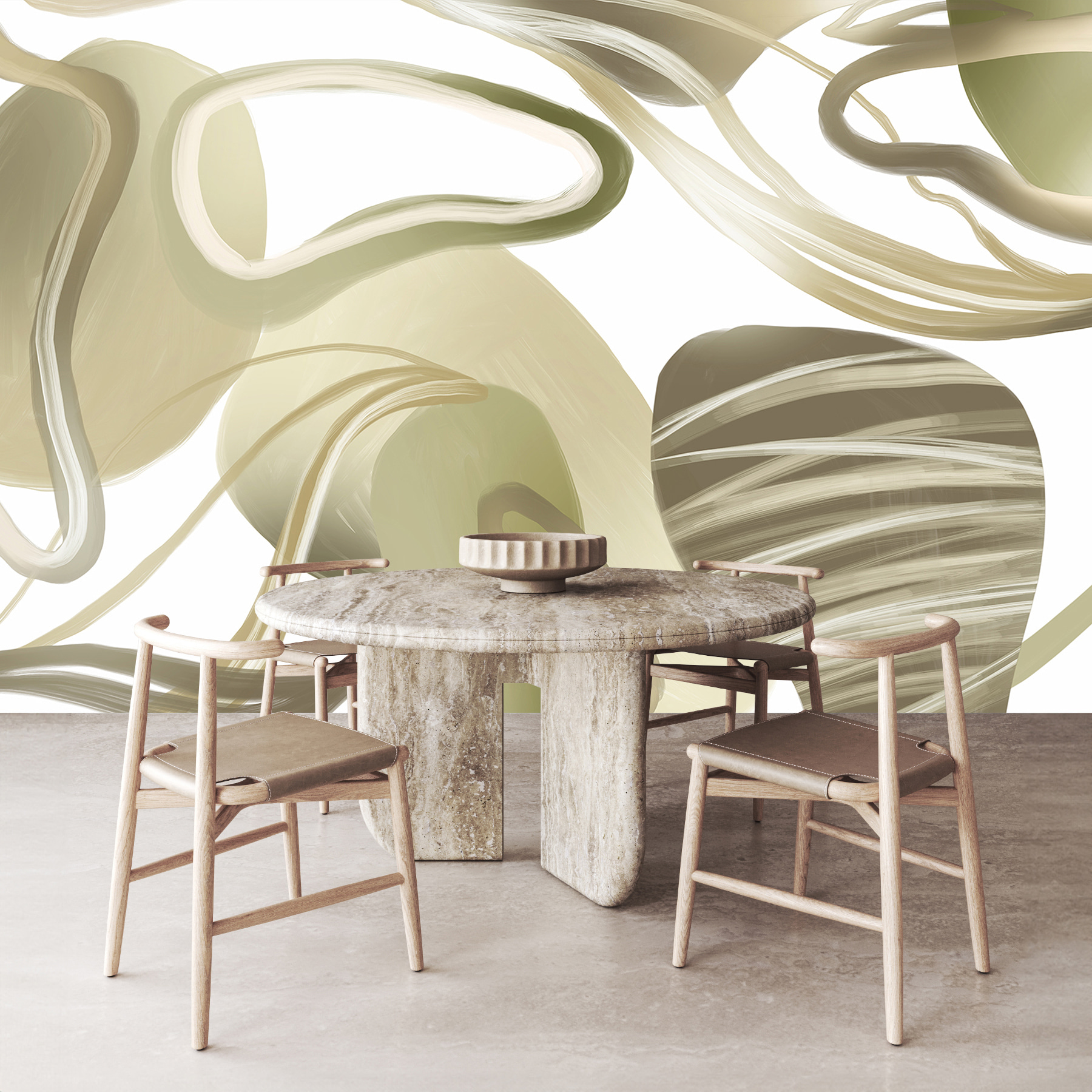 Képzelje el, hogy belép egy olyan szobába, ahol a falak úgy érzik, mintha lágyan kavarognának Ön körül – ez a “Swirling Elegance in Abstract Form” (Kavargó elegancia absztrakt formában) freskó. Olyan, mintha egy zen álomvilágba lépnél, ahol a kortárs és a hangulatos találkozik. A lágy, áramló vonalak arra invitálnak, hogy lazítson, talán egy csésze tea mellett. Tökéletesen alkalmas arra, hogy bármilyen teret szentéllyé változtasson, olyan, mintha a falfestmény azt suttogná: “Pihenj, maradj egy kicsit”. Ez nem csak egy falfestmény – ez egy hangulat. Alakítsa át kedvenc zugát, és érezze, ahogy a nyugalom átjárja érzékeit.