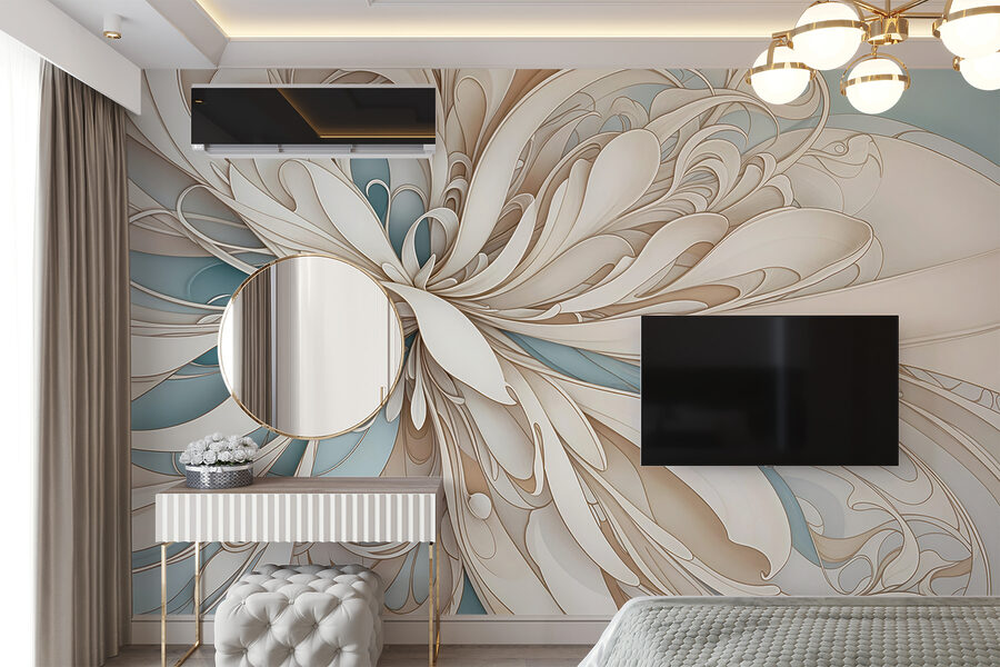Képzelje el, hogy fehér és kék örvények táncára ébred a falán, mintha a hullámok a felhőkkel találkoznának egy szelíd ölelésben. Ez a falfestmény olyan, mint egy suttogott titok magától a természettől, közvetlenül a nappalidban. Részben álomszerű, részben modern művészet, és a hétköznapokat varázslatossá változtatja. Képzelje el, hogy vacsoraestet rendez, és valaki elveszik a mintáiban – a beszélgetés kellemes elmélkedésekbe merül a művészetről és az életről. Ez nem csak dekoráció, hanem élmény. Egy kis zen, egy kis égbolt… ki gondolta volna, hogy egy fal is lehet költészet?