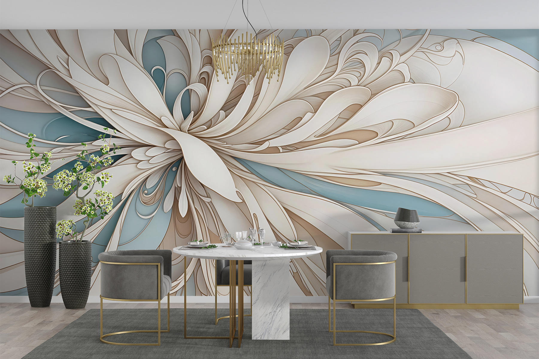 Képzelje el, hogy fehér és kék örvények táncára ébred a falán, mintha a hullámok a felhőkkel találkoznának egy szelíd ölelésben. Ez a falfestmény olyan, mint egy suttogott titok magától a természettől, közvetlenül a nappalidban. Részben álomszerű, részben modern művészet, és a hétköznapokat varázslatossá változtatja. Képzelje el, hogy vacsoraestet rendez, és valaki elveszik a mintáiban – a beszélgetés kellemes elmélkedésekbe merül a művészetről és az életről. Ez nem csak dekoráció, hanem élmény. Egy kis zen, egy kis égbolt… ki gondolta volna, hogy egy fal is lehet költészet?