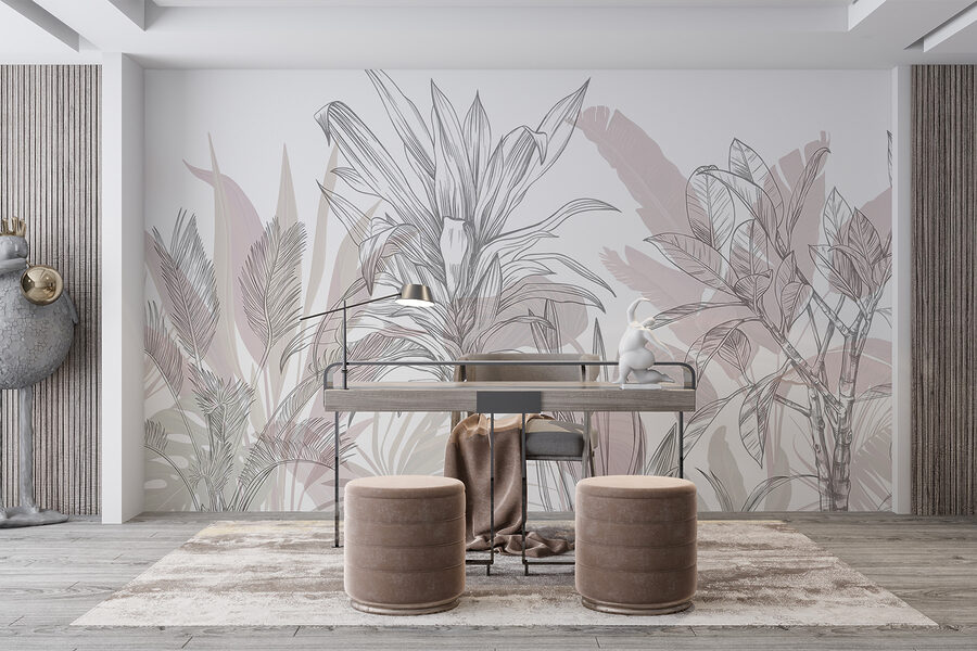 Az Ethereal Sketches of Tropical Flora trópusi paradicsommá varázsolja az unalmas falat. Képzeld el, hogy egy nyugodt dzsungelbe lépsz, amikor arra jársz – azok a buja pálmalevelek szinte ringatózni látszanak a szélben. A gyengéd vonalvezetés a nyugalom és az elegancia érzetét kelti, míg a lágy színeknek köszönhetően könnyen keverhető bármilyen bútorral. Olyan, mintha egy minivakációra mennél haza, a naptej és az utazással járó gondok nélkül. A barátok csodálkozni fognak, honnan jön a zen vibrálásod. Komolyan, ki ne vágyna egy kis paradicsomra közvetlenül a lakásban?
