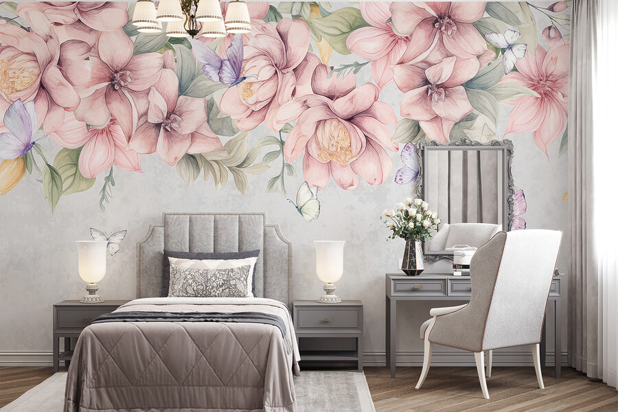 Képzelje el, hogy minden reggel erre a falfestményre ébred. Pillangók lazán hűsölnek a buja virágok között – mintha a természet egy pillanatra megállt volna. A lágy pasztellszínek és az akvarell hangulat bármelyik szobát békés zuggá varázsolja. Tökéletes ahhoz, hogy egy kis szeszélyt varázsoljon a falára anélkül, hogy bepiszkolná a kezét. Olyan, mintha saját varázslatos kerted lenne, amelyet nem kell öntözni. Akár a virágok szerelmese vagy, akár csak a szép dolgok szerelmese, ez egy beszélgetésindító és hangulatjavító egyben.