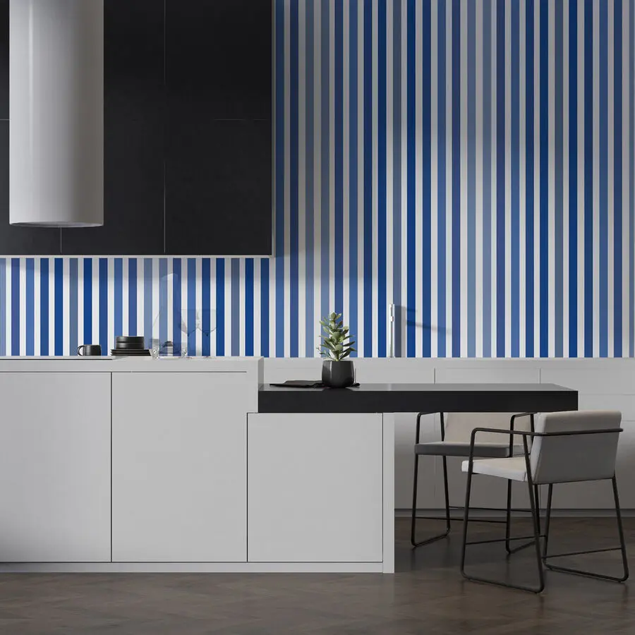 Képzelje el, hogy belép egy szobába, és úgy érzi, mintha egy hangulatos tengerparti takaróba burkolózott volna. A “Kék-fehér csíkos” falfestmény tökéletesen megragadja ezt a hangulatot. Van ez a friss, szellős érzés – mint a kedvenc tengerparti napod, csak kevesebb leégéssel. A csíkok éppen a megfelelő merészséggel rendelkeznek, és anélkül tesznek kijelentést, hogy kiabálnának. Párosítsd egy kényelmes székkel és egy jó könyvvel, és gyakorlatilag azt suttogja, hogy “pihenj”. Tökéletes egy olyan térbe, amely egy kis tengeri szeszélyességgel kevert stílusra vágyik. Tekerjen egy kis boldogságot a falaira!
