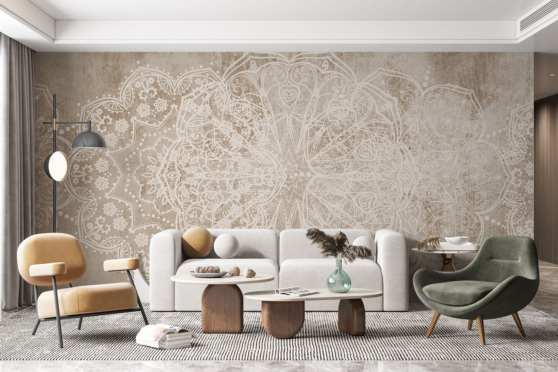 Bármelyik szobát hangulatossá varázsolhatja ezzel a lenyűgöző falfestménnyel, amely meleg barna háttéren fehér, díszes mintát ábrázol. Képzelje el, hogy egy csésze kávé mellett pihen, miközben a bonyolult mintákat bámulja, amelyek szinte úgy érzi, mintha a kényelem és a kreativitás titkait suttognák. Olyan, mintha egy műalkotást hívna meg otthonába. Ez a falfestmény tökéletes a nappaliba vagy egy szeszélyes hálószobába, egy csipetnyi eleganciát és melegséget kölcsönöz. Ráadásul lehet, hogy mások megkérdezik tőle: “Honnan szerezted ezt?” – és te tudálékosan mosolyoghatsz. Ez nem csak dekoráció; ez egy beszélgetésindító!
