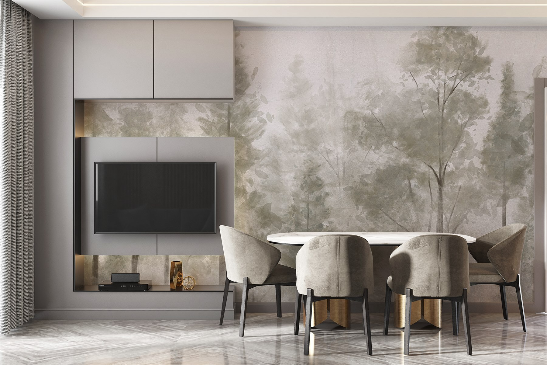 A zöld és a szürke gyengéd árnyalatai nyugodt légkört teremtenek, így tökéletesen illeszkedik a különböző dekorációs stílusokhoz. Képzelje el, ahogy a reggeli kávéját kortyolgatva ezt a békés jelenetet bámulja – kinek kell egy faház az erdőben, amikor ez is megvan? Hagyja, hogy a természet suttogása betöltse terét, és talán még egy kis álmodozásra is szert tesz. Ez nem csak dekoráció; ez egy mindennapi menekülés.
