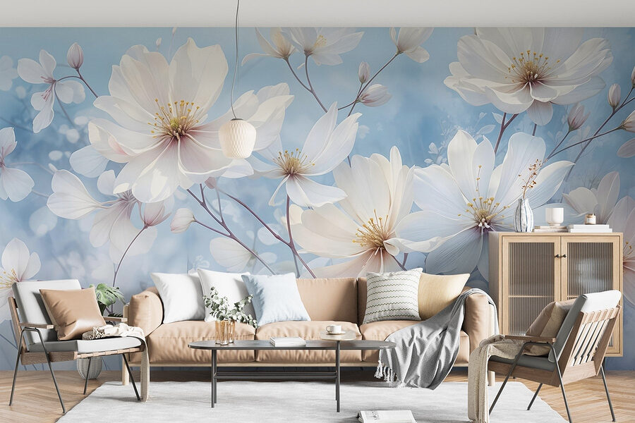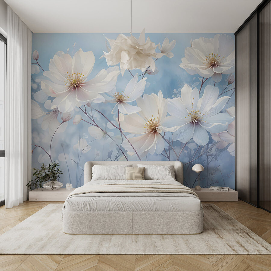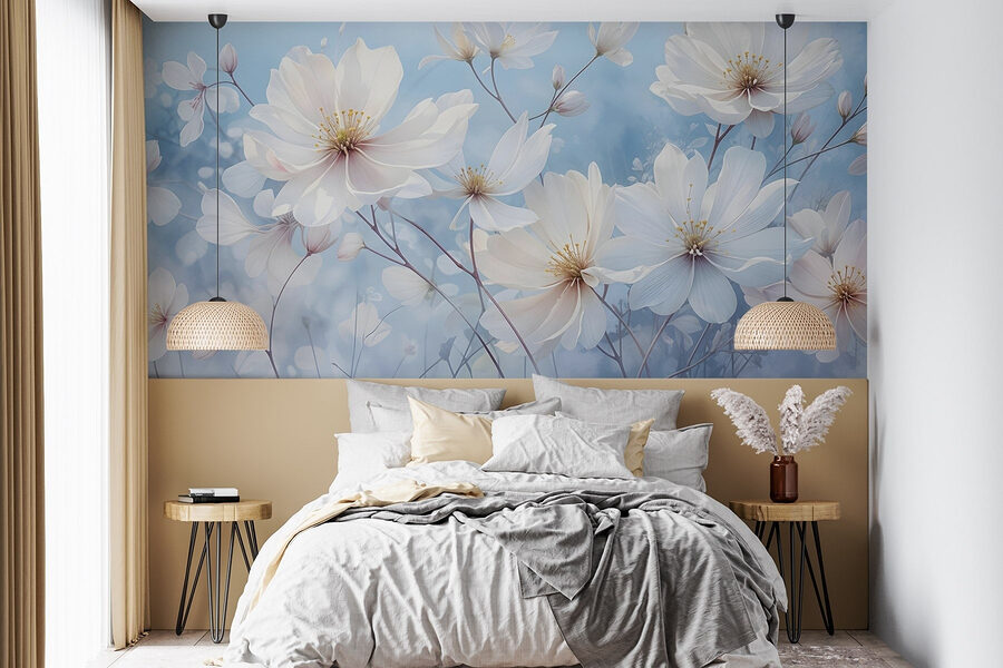 Alakítson át bármilyen helyiséget nyugodt oázissá ezzel a “Falfestmény fehér virágokból álló csoporttal”. Képzelje el: a nyitott ablakokon keresztül lágy, gyengéd szellő áramlik, miközben ezek a finom virágok nyugalmat és bájt varázsolnak a térbe. Az akvarell hatás lágyítja az éleket, és gyönyörűen illeszkedik a dekorációhoz, békés hátteret teremtve, amely álmodozásra hív. Képzelje el, ahogy a reggeli kávéját kortyolgatva úgy érzi, mintha egy gyönyörű kertben lenne, még akkor is, ha ez csak a hangulatos nappalija. Ez az a fajta falfestmény, amely azt mondja: “Igen, az élet elég édes”, anélkül, hogy megpróbálná. Tökéletes mindenkinek, aki egy kis természetre vágyik a belső térben, ez a falfestmény olyan, mint egy meleg ölelés egy hűvös napon. Miért ne hagynád, hogy ezek a kedves virágok feldobják a faladat?
