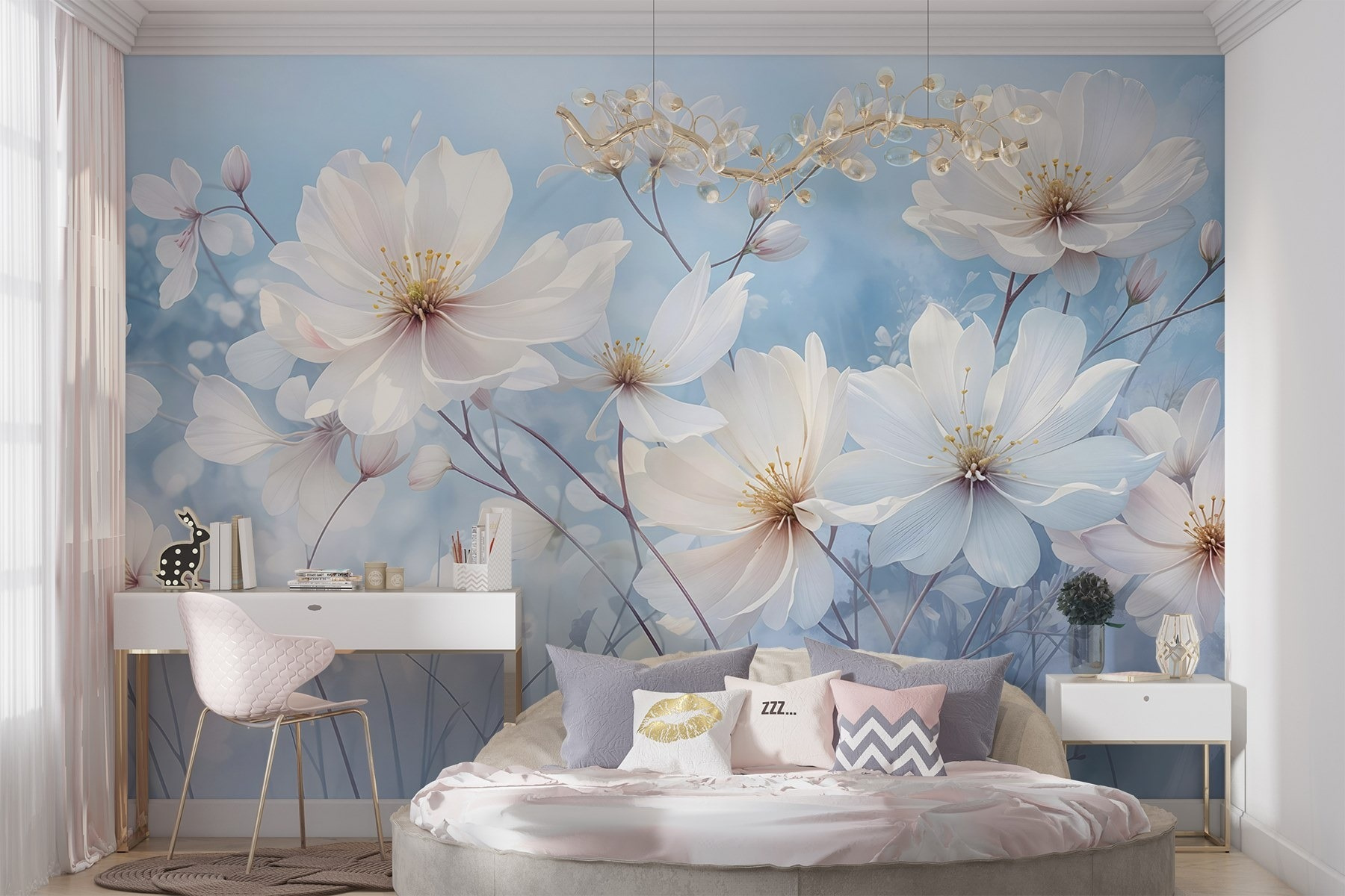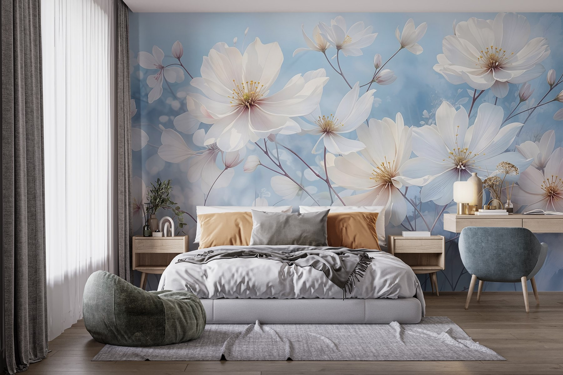Alakítson át bármilyen helyiséget nyugodt oázissá ezzel a “Falfestmény fehér virágokból álló csoporttal”. Képzelje el: a nyitott ablakokon keresztül lágy, gyengéd szellő áramlik, miközben ezek a finom virágok nyugalmat és bájt varázsolnak a térbe. Az akvarell hatás lágyítja az éleket, és gyönyörűen illeszkedik a dekorációhoz, békés hátteret teremtve, amely álmodozásra hív. Képzelje el, ahogy a reggeli kávéját kortyolgatva úgy érzi, mintha egy gyönyörű kertben lenne, még akkor is, ha ez csak a hangulatos nappalija. Ez az a fajta falfestmény, amely azt mondja: “Igen, az élet elég édes”, anélkül, hogy megpróbálná. Tökéletes mindenkinek, aki egy kis természetre vágyik a belső térben, ez a falfestmény olyan, mint egy meleg ölelés egy hűvös napon. Miért ne hagynád, hogy ezek a kedves virágok feldobják a faladat?
