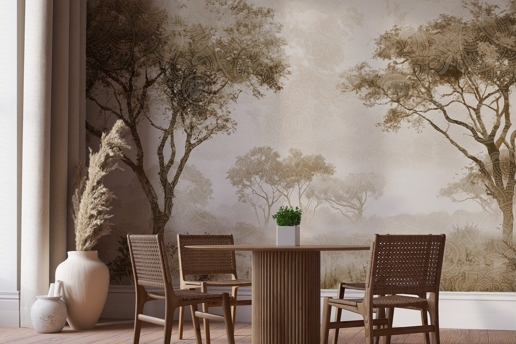 Alakítsa át terét a varázslatos “Fák csoportja a mezőn” falfestménnyel. Ez nem csak művészet – ez egy megnyugtató menekülés közvetlenül az otthonában. Képzelje el, hogy egy nyugodt tájra ébred, ahol a fák szinte suttogva mesélnek a szellőnek. A lágy, földes tónusok meghitt hangulatot teremtenek, így a lusta délutánok még hívogatóbbnak tűnnek. Képzelje el egy csésze kávéval a kezében, semmi rohanás, csak Ön és ez a nyugodt jelenet. Tökéletes a természet szerelmeseinek, melegséget és személyiséget kölcsönöz bármelyik szobának. Rajta, hagyja, hogy a falak egy kis varázslatot lélegezzenek!