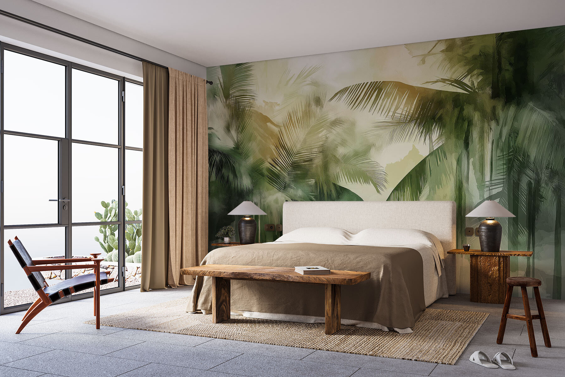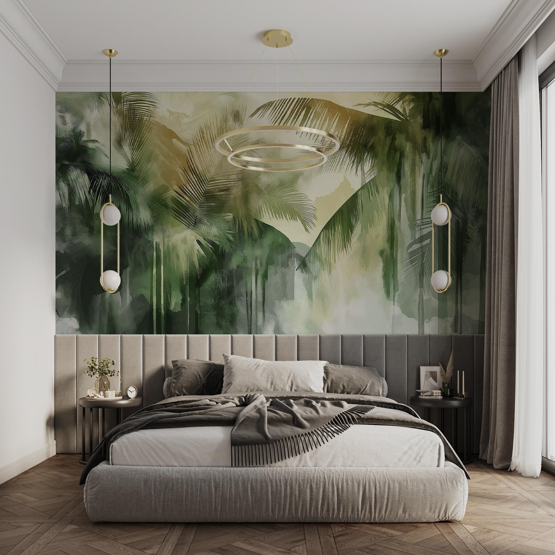 Alakítsa át terét egy nyugodt trópusi üdülőhellyé ezzel a lenyűgöző pálmafás falfestménnyel. Képzelje el, hogy minden alkalommal, amikor belép a szobába, egy mini vakációra lép – a lágy zöldek és a meleg sárgák együtt táncolnak, nyugodt hangulatot teremtve, amely tökéletesen illik otthona bármelyik sarkába. Akár egy hangulatos olvasósarok fölé kerül, akár egy otthoni irodát dob fel, ez a falfestmény a természetet egyenesen a falakra hozza. Olyan, mintha a paradicsom egy szeletét birtokolnád a bogarak nélkül! Adjon a dekorációnak ezt a frissítően hűvös csavart, és ki tudja – lehet, hogy a munkaidő helyett a homokos tengerpartról fog álmodozni!