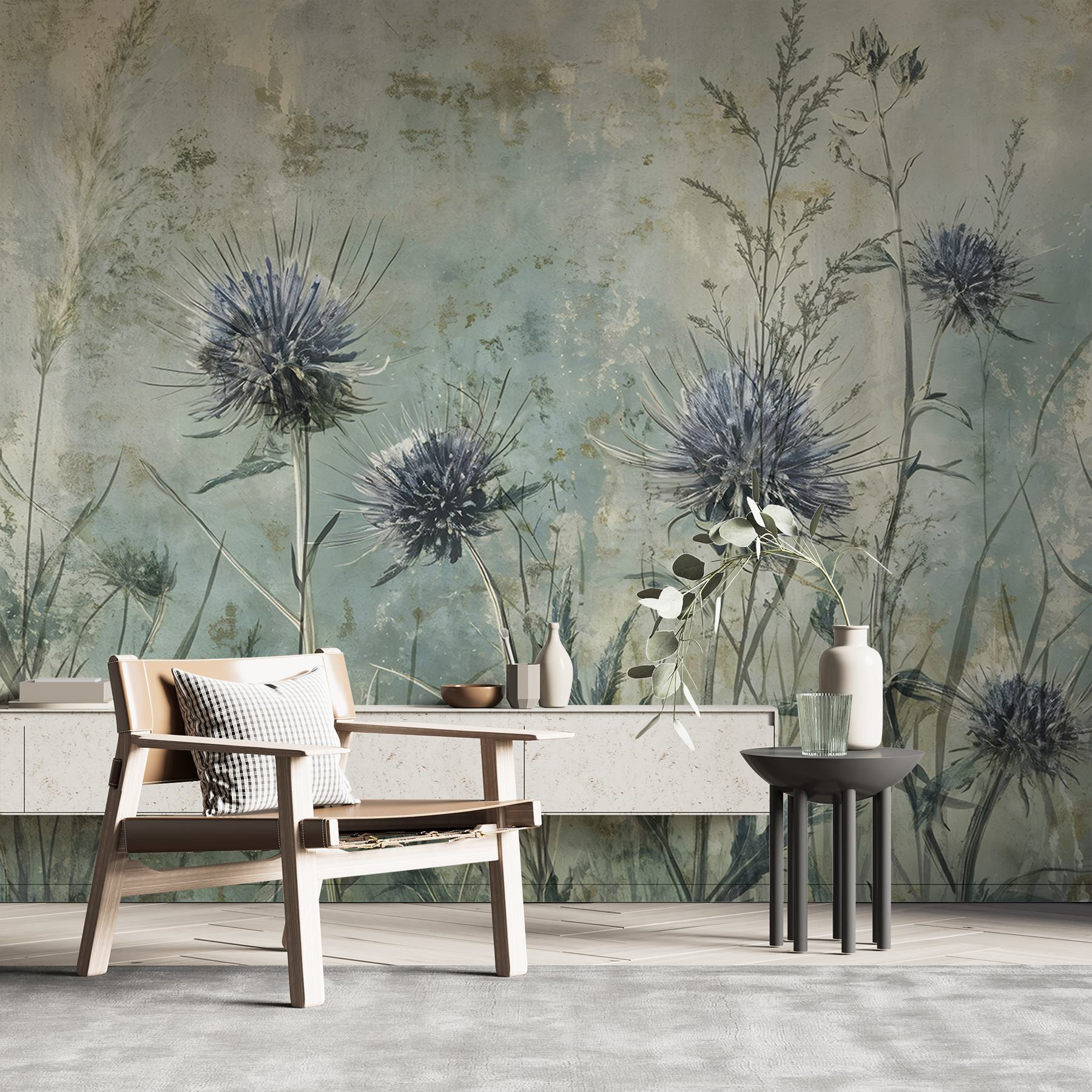 Bármilyen teret alakítson át nyugodt meneküléssé ezzel a varázslatos, virágokat és növényeket ábrázoló falfestménnyel. Képzelje el, hogy szelíd kékek és zöldek között ébred, ahol magas füvek lengedeznek, és vibráló virágok mosolyogni hívnak. Tökéletes azoknak, akik szeretik a természetet, olyan, mintha egy csendes kert lenne közvetlenül a nappaliban. A barátok talán besétálnak, megállnak, és azt kérdezik: “Hű, ezt meg honnan szerezted?”. Beszélgetéseket kezdeményez és magához vonzza az embereket. A lágy színek nyugalmat árasztanak, így ideális hangulatos estékre vagy békés reggelekre. Ki ne szeretne hazatérni a természet egy kis darabkájára?
