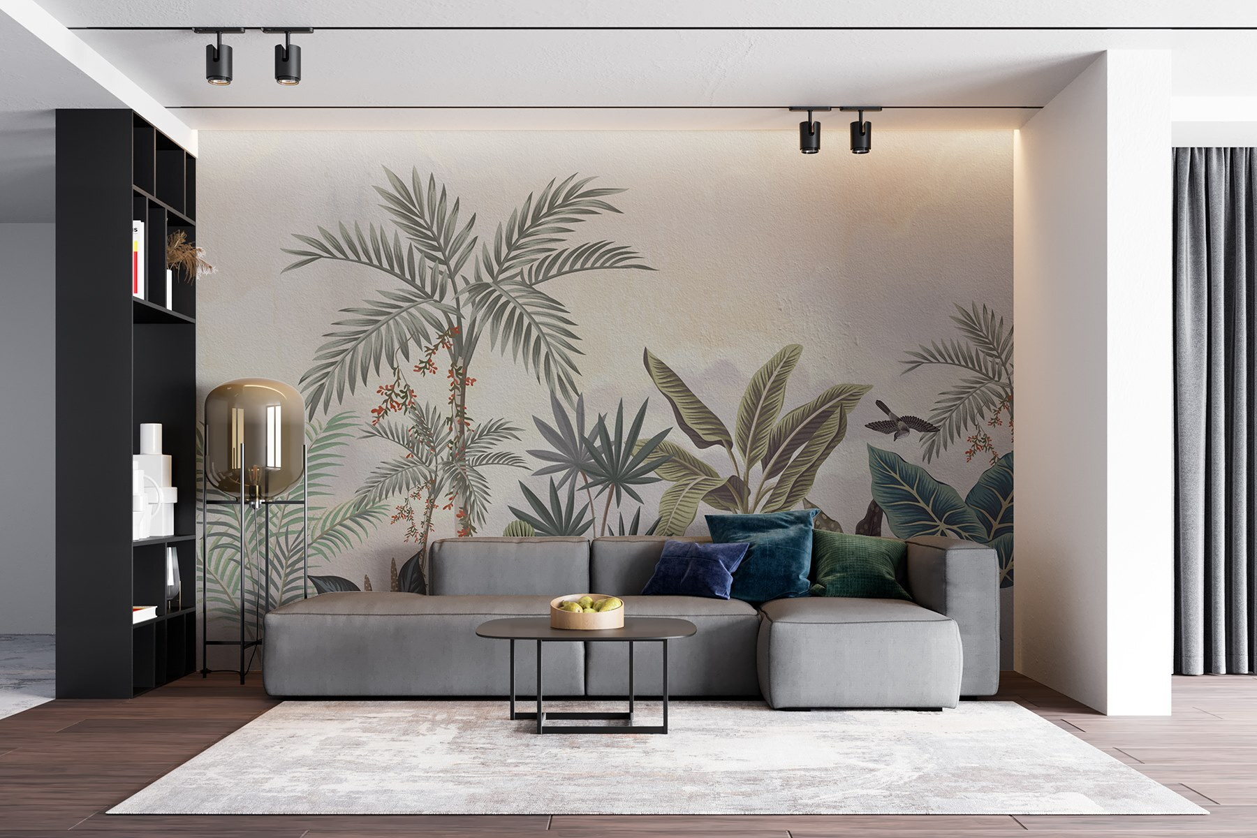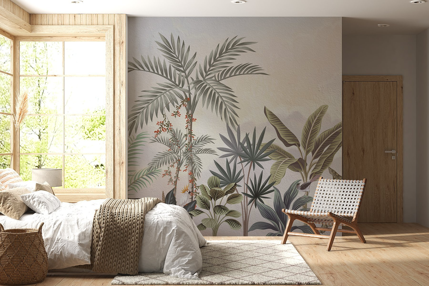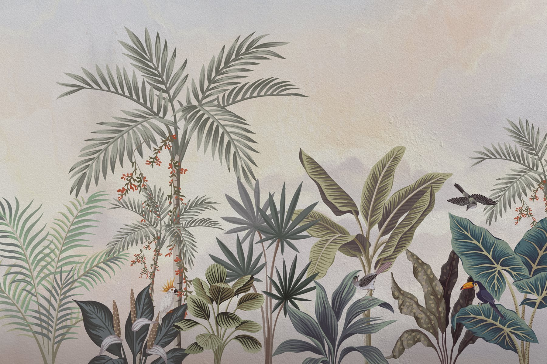 Alakítson át bármilyen teret ezzel a buja növényeket és bájos madarakat ábrázoló, vibráló falfestménnyel. Képzelje el, hogy felébred, kávéval a kezében, és egy trópusi oázis fogadja közvetlenül a nappalijában. Olyan, mintha egy kis dzsungelt hozna be a lakásba – a szúnyogok és a kérdéses állatok nélkül. A zöldek keveréke, a virágos részletekből származó színpompákkal párosulva frissítő hangulatot kölcsönöz az unalmas falaknak. Legyen szó akár akcentusfalról, akár csak a családi összejövetelek vidám hátteréről, ez a falfestmény rendelkezik a “wow” faktorral. Készüljön fel a bókokra és a kalandról való álmodozásra minden alkalommal, amikor elhalad mellette!