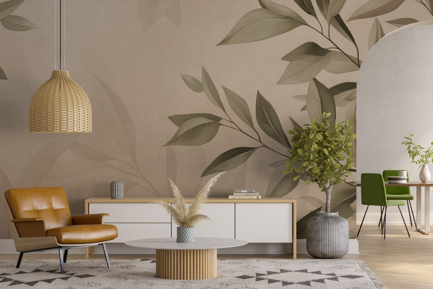 Alakítsa át terét a “Nyugodt levelek lágy háttéren” nyugodt szépségével. Ez a falfestmény a levelek lágy ringatózását örökíti meg, szinte mintha táncolnának a lágy szellőben – természetesen a pollenallergia kockázata nélkül! A tompa tónusok meghitt hangulatot kölcsönöznek, és tökéletesen alkalmasak arra, hogy nyugodt légkört teremtsenek bármelyik helyiségben. Képzelje el, hogy egy könyvvel összegömbölyödve úgy érzi, mintha egy kis erdei menedékhelyre lépett volna be az otthonába. Ez az a fajta művészet, amely békét suttog, és az unalmas falakat a múlté teszi. Tökéletes a természet szerelmeseinek, vagy bárkinek, aki egy kis nyugalomra vágyik az életében!