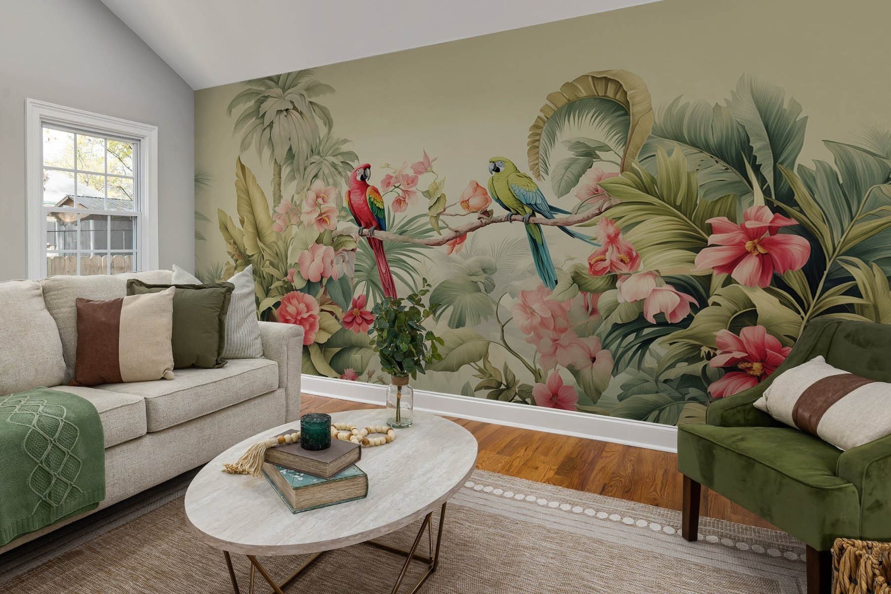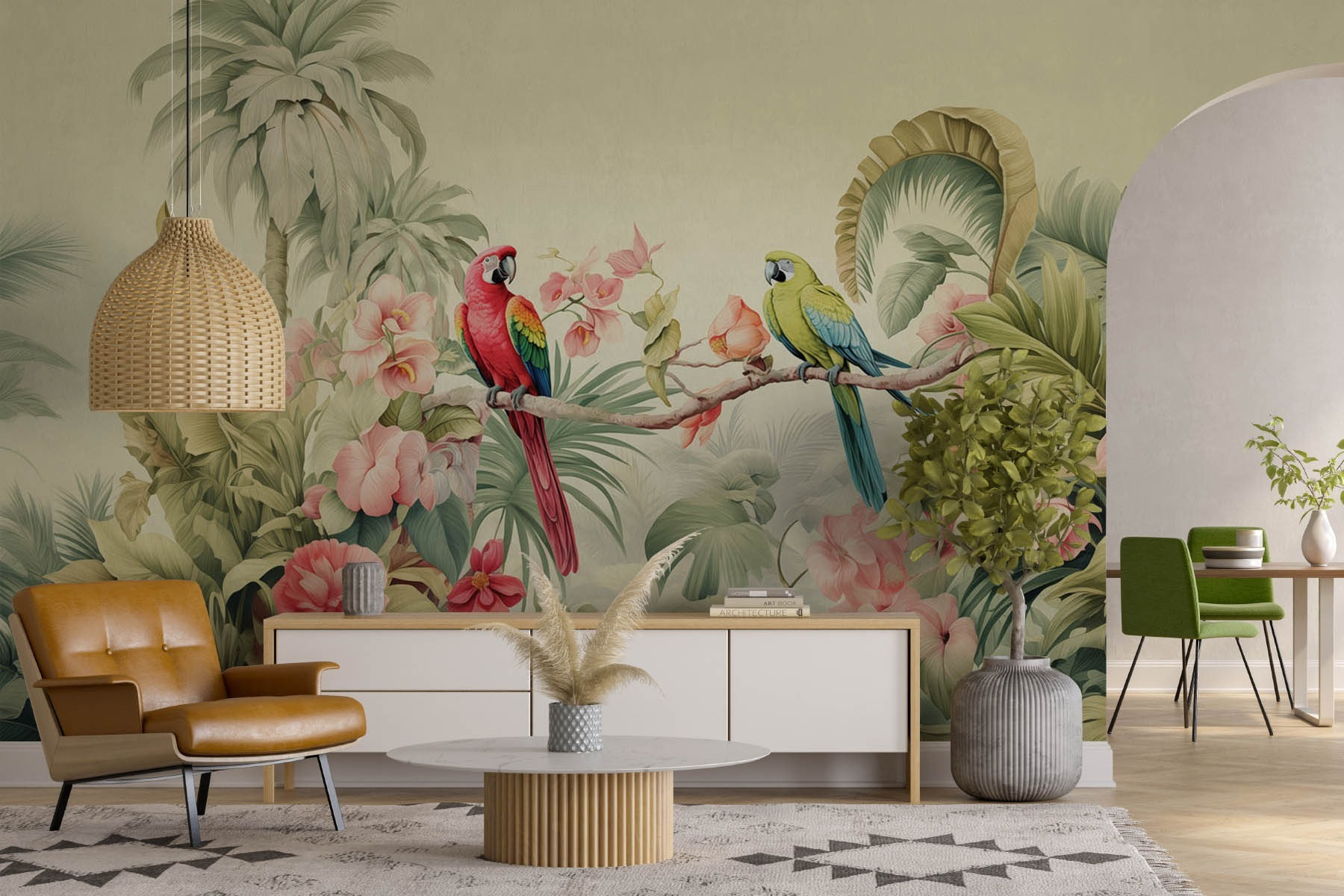 Alakítsa át terét ezzel a vibráló falfestménnyel, amelyen egy bájos papagájpár ül kecsesen egy ágon. Ezek a tollas barátok egy kis trópusi paradicsomot hoznak az otthonodba. A buja virágok és levelek nyugodt légkört teremtenek, így tökéletes egy hangulatos olvasósarokba vagy egy élénk nappaliba. Képzelje el, ahogy a reggeli kávéját szürcsölgeti e színpompa körül – olyan, mintha örökös vakáción lenne! Ráadásul a papagájok játékos hangulata még néhány pimasz beszélgetésre is inspirálhat. Fogadja el a természet szépségét, és hagyja, hogy a falai meséljenek!