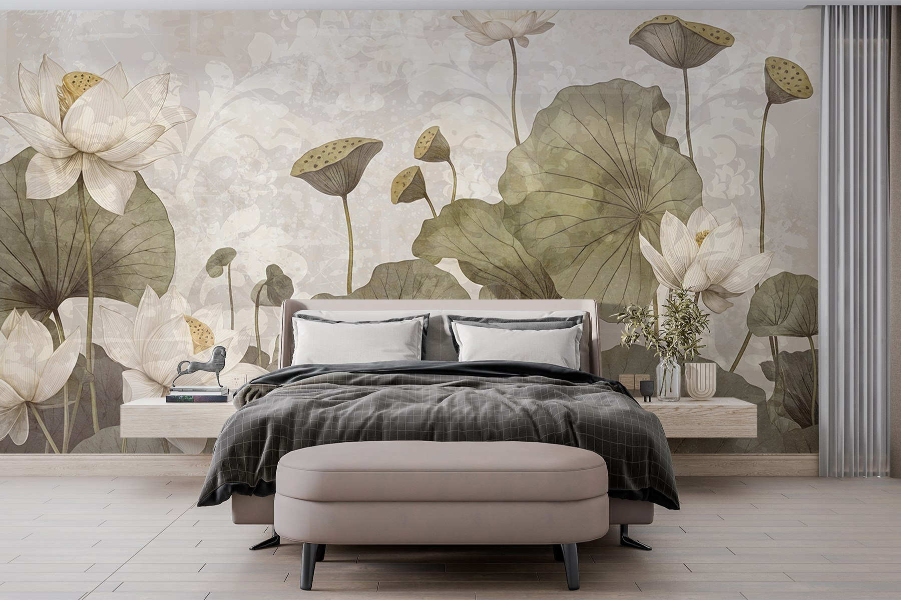 Alakítsa át terét a “Serene Lotus Blooms in Gentle Hues” falfestménnyel. Képzelje el, hogy minden alkalommal, amikor belép a szobába, egy nyugodt oázisba lép. Ezek az elegáns lótuszvirágok lágyan ringatóznak, és a béke és nyugalom érzését idézik. A lágy színekkel, amelyek zökkenőmentesen keverednek, ez a falfestmény a természet szépségét adja hozzá anélkül, hogy túlzó lenne. Olyan, mintha egy mini kirándulás lenne a falon. Képzelje el, ahogy egy könyvvel összegömbölyödve vagy egy csésze teát élvezve elveszik ennek a virágos remekműnek a békés hangulatában. Tökéletes a nyugodt légkör megteremtéséhez, amelytől a vendégek csodálni fogják a stílusát.