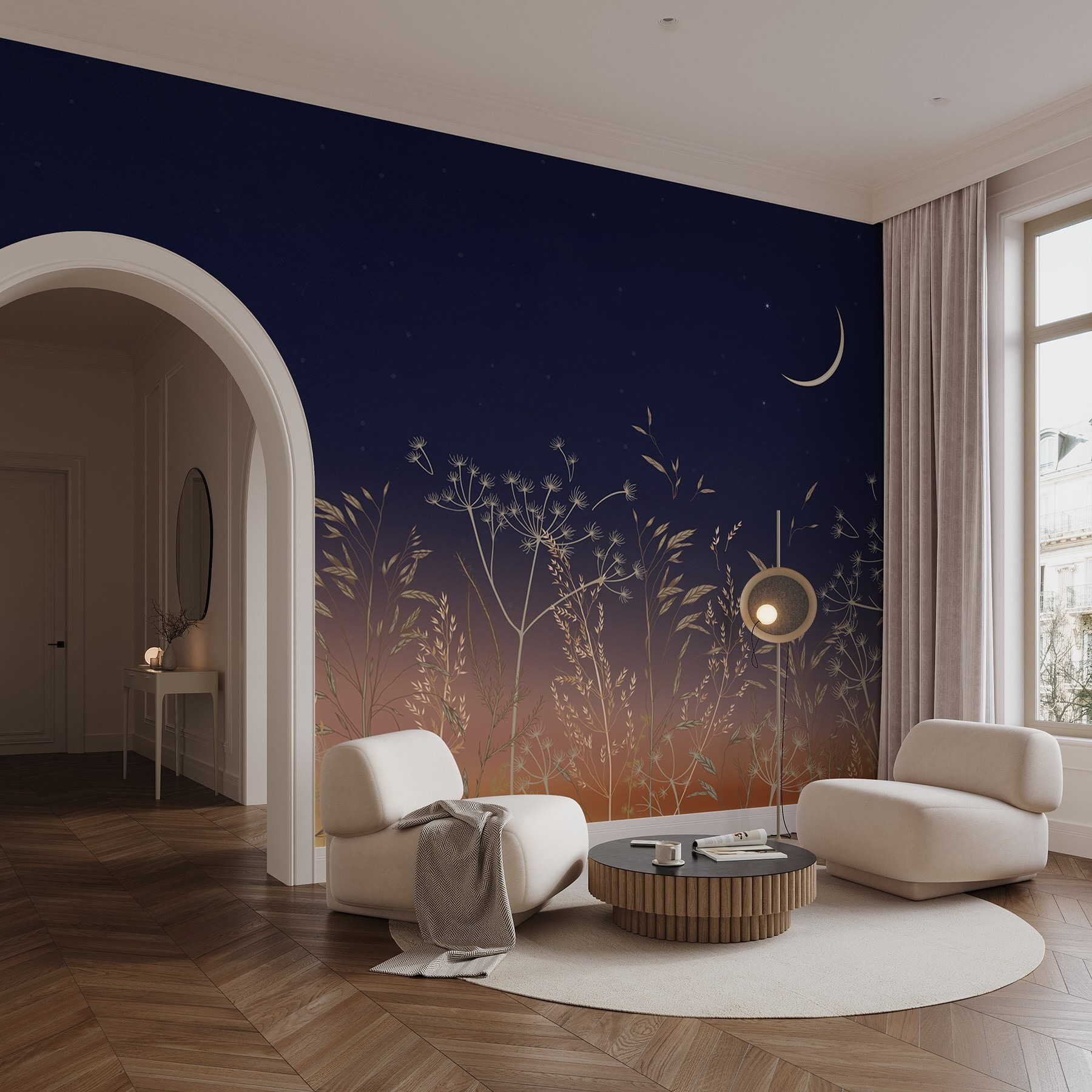 Alakítson át bármilyen teret a “Fű- és virágmező” falfestménnyel – mintha a természet nyugalmát hozná be a házba anélkül, hogy aggódnia kellene a bosszantó pollenek miatt. Képzelje el ezt: lágy, akvarellszerű hangulat, amely nyugalmat sugároz. Képzelje el, ahogy teát szürcsölget, miközben a holdfény táncol a falon; szinte hallja a tücskök ciripelését. A falfestmény lágy árnyalatai és finom virágos részletei nyugodt légkört teremtenek, amely tökéletes hangulatos estékhez vagy fényes összejövetelekhez. Nem csak dekoráció – hangulatjavító. Ki ne szeretne egy kis darabka természetet az otthonában? Egy ilyen lenyűgöző fal talán kedvet csinál egy szabadtéri piknikhez… a házban!