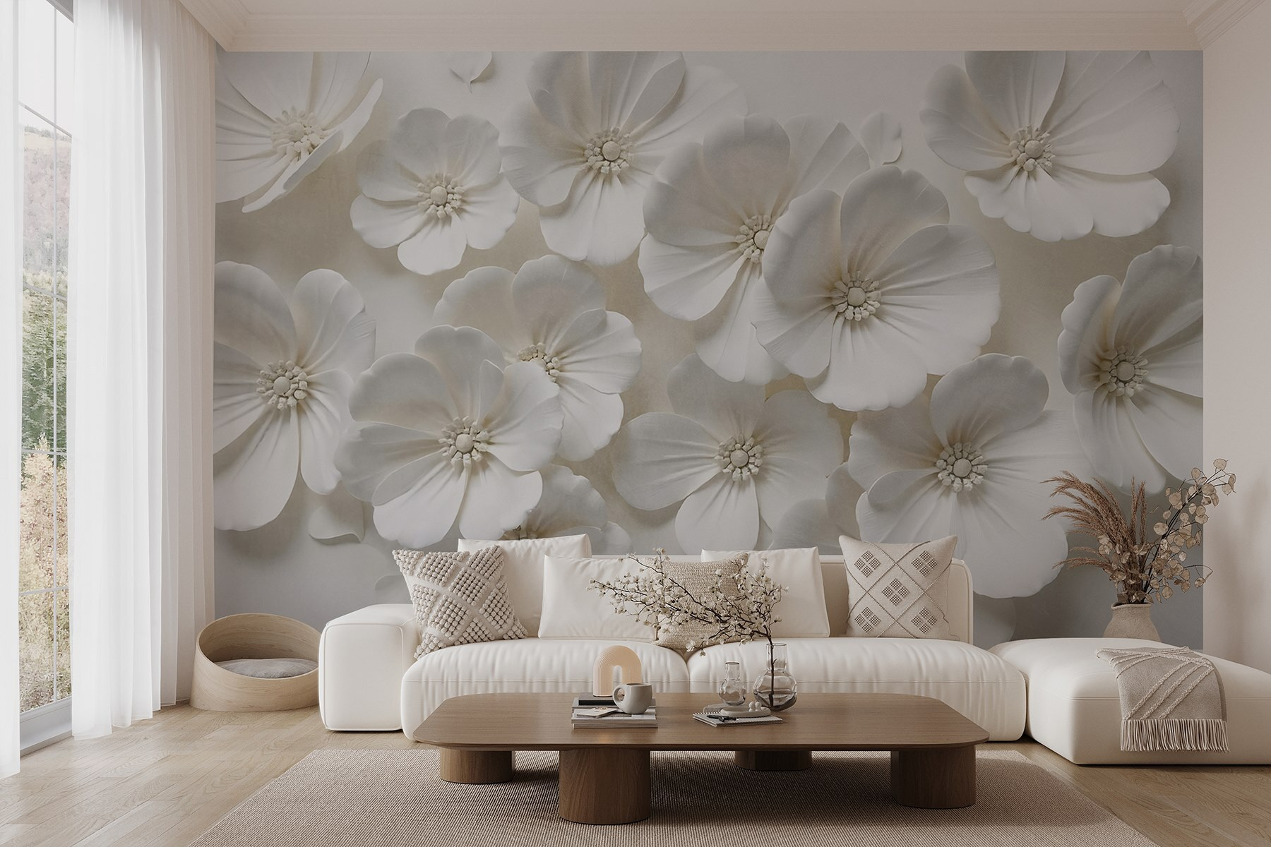 Alakítsa át terét egy nyugodt szentéllyé ezzel a lenyűgöző falfestménnyel, amely fehér virágok bájos csoportját ábrázolja. Olyan, mintha egy leheletnyi friss levegőt hozna be a lakásba – persze a pollenek nélkül! Képzelje el, hogy minden reggel egy szelíd virágzásra ébred, öntözés nélkül!
