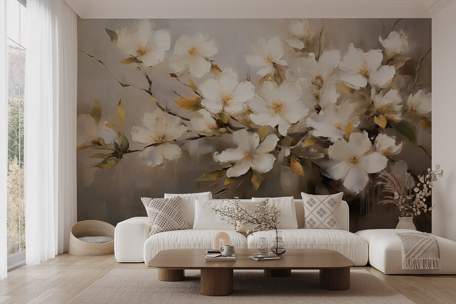 Alakítsa át terét egy nyugodt pihenőhellyé ezzel a lenyűgöző “Falfestmény fehér virágok festményével”. Képzelje el, hogy arra ébred, hogy finom bazsarózsák virágoznak közvetlenül a falán – olyan, mintha egy álomszép japán kert egy darabja lenne az otthonában. Ez a falfestmény lágy eleganciát suttog, tompa tónusokkal, amelyek könnyen szemet gyönyörködtetnek. Tökéletes egy hangulatos olvasósarokba vagy egy nyugodt hálószobába, a béke érzését idézi. Képzelje el, ahogy teát kortyolgat, miközben ezek a kedves virágok szelíden emlékeztetik arra, hogy a szépség bárhol virágozhat. Ez nem csak dekoráció; ez egy napi adag nyugalom.