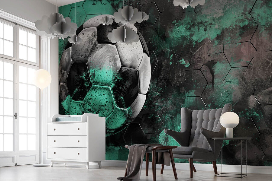 Alakítsa át terét ezzel a lenyűgöző falfestménnyel, amely egy focilabdát ábrázol egy élénk zöld és fekete háttér előtt. Olyan, mintha a játék izgalmát egyenesen a nappalidba hoznád, a szőnyegen lévő futballcipők nélkül! A merész színek és a dinamikus dizájn könnyen kiválthat néhány baráti vitát arról, hogy ki a legjobb játékos – csak ne felejtse el a popcornt a meccsnapok pillanataihoz. Ez a falfestmény tökéletes a sport szerelmeseinek, vagy bárkinek, aki egy játékos csavart szeretne adni a dekorációnak, és élénk beszélgetésekre, sőt, talán még egy kis álmodozásra is ösztönöz a tökéletes gólról. Akár egy játékszobában, akár egy gyerekszobában, vagy akár az irodában, biztosan feldobja a hangulatot, és életre kelti a falakat! Ki gondolta volna, hogy a foci ilyen stílusos is lehet?