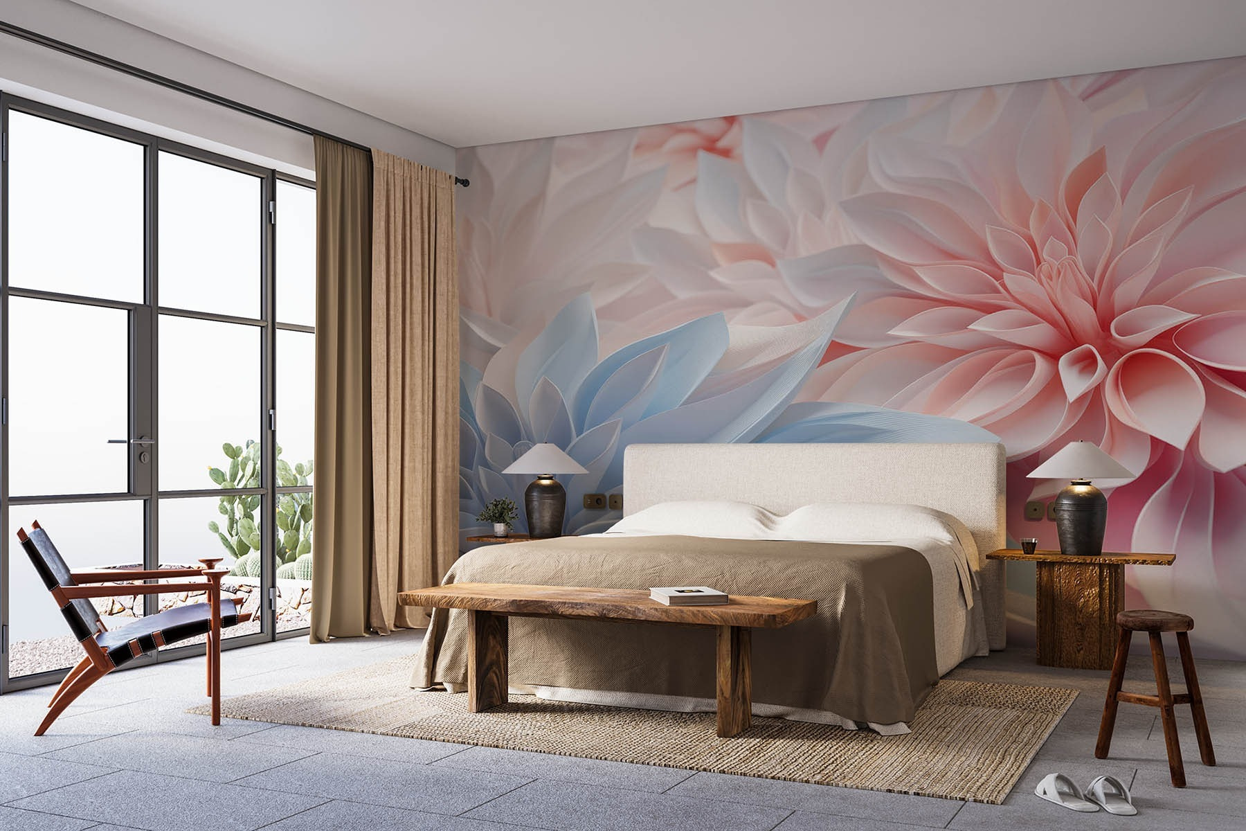 Alakítsa át terét ezzel a bájos falfestménnyel, amely pasztellszínű papírvirágok lenyűgöző elrendezését tartalmazza. Képzelje el, milyen friss levegőt hoz – minden egyes lágy rózsaszín és kék színű virág olyan, mintha a tavasz gyengéd ölelése lenne. Tökéletes egy hangulatos zugba vagy egy élénk nappaliba, olyan, mintha egy kertet hívna be, anélkül, hogy az öntözéssel kellene törődnie.