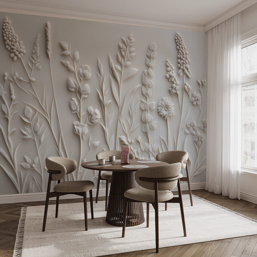 Alakítsa át terét ezzel a lenyűgöző falfestménnyel, amely finom fehér virág- és levélmotívumot ábrázol. Képzelje el, hogy egy olyan szobába lép be, amely tele van a természet lágy érintéseivel, ahol minden pillantás olyan, mint egy friss levegővétel. Ez a falfestmény nem csak ott ül, hanem meghívja Önt, szinte suttogva mesél a nyugodt kertekről és a lusta délutánokról. Tökéletes egy nyugodt oázis megteremtéséhez otthonában, olyan, mintha egy titkos kert lenne a falon. Akár kávét főzöl, akár egy könyvvel pihensz, ez a dizájn elegáns, természet ihlette hangulatot kölcsönöz, amely minden pillanatot egy kicsit édesebbé tesz. Egyszerű, mégis feltűnő – egy gyönyörű háttér, amely könnyed eleganciájával örömet okozhat. Ki ne szeretné ezzel körülvenni magát?
