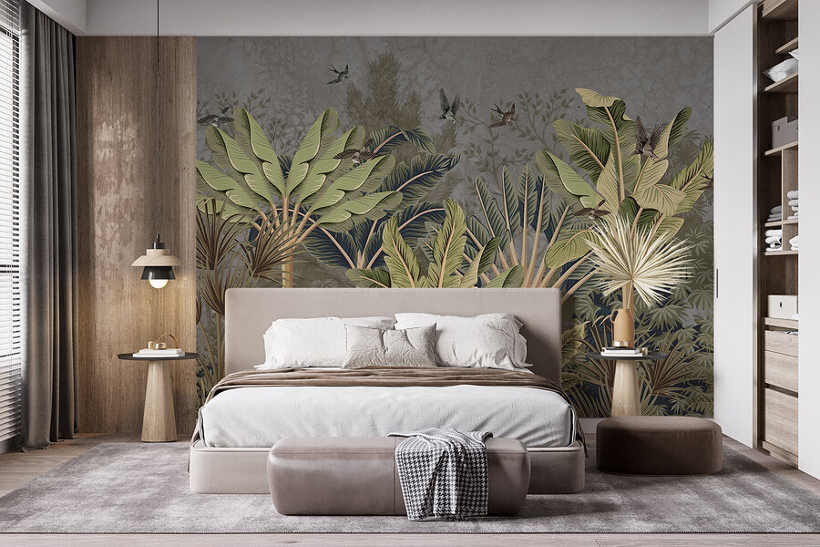 Alakítson át bármilyen helyiséget nyugodt meneküléssé ezzel a lenyűgöző trópusi erdő falfestménnyel. Képzelje el, hogy egy buja paradicsomba lép, ahol a vibráló levelek lágyan ringatóznak, és madarak suhannak el, a vadon suttogását hozva. Nem csak a falat díszíti; történetet mesél, egzotikus kalandokról való álmodozásra invitálva. Tökéletes egy hangulatos olvasósarokba vagy egy élénk élettérbe, melegséget és egy csipetnyi természetközeliséget kölcsönöz. Ráadásul remek beszélgetésindító – csak várd ki, amíg a vendégek megkérdezik, hogy titokban dzsungelkutató lettél-e! Ölelje át a természetet szúnyogok nélkül.
