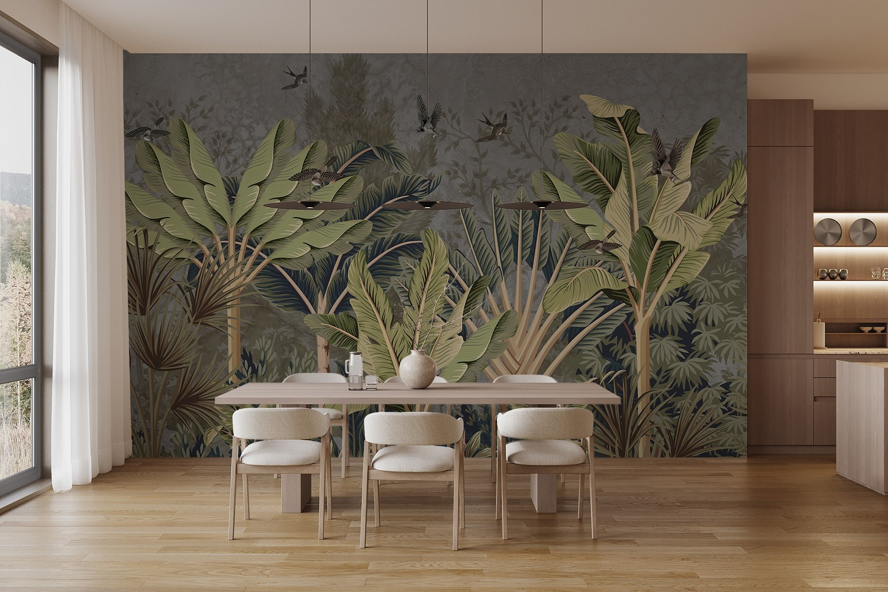 Alakítson át bármilyen helyiséget nyugodt meneküléssé ezzel a lenyűgöző trópusi erdő falfestménnyel. Képzelje el, hogy egy buja paradicsomba lép, ahol a vibráló levelek lágyan ringatóznak, és madarak suhannak el, a vadon suttogását hozva. Nem csak a falat díszíti; történetet mesél, egzotikus kalandokról való álmodozásra invitálva. Tökéletes egy hangulatos olvasósarokba vagy egy élénk élettérbe, melegséget és egy csipetnyi természetközeliséget kölcsönöz. Ráadásul remek beszélgetésindító – csak várd ki, amíg a vendégek megkérdezik, hogy titokban dzsungelkutató lettél-e! Ölelje át a természetet szúnyogok nélkül.