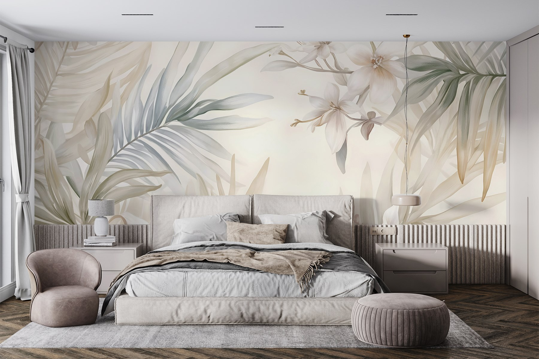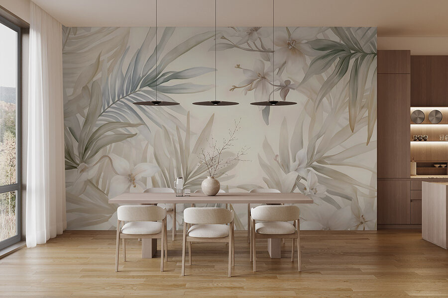 A “Delicate Blooms and Gentle Foliage” falfestmény segítségével bármelyik helyiséget nyugtató oázissá varázsolhatja. Képzelje el, ahogy egy lusta délután teát kortyolgat, miközben a lágy napfény átszűrődik ezeken a gyönyörű leveleken, és az egész teret könnyednek és légiesnek érzi. Ennek a falfestménynek a gyengéd színei és hívogató virágmintái elrepíthetnek egy nyugodt kertbe, a bosszantó bogarak nélkül! Tökéletes mindenkinek, aki szeretne egy kis természetet a belső térbe varázsolni, mintha egy kicsit a külvilágot hozná be – anélkül, hogy zöld hüvelykujjal rendelkezne. Legyen szó egy hangulatos zugról vagy a fő falról, egyszerűen melegségbe és bájba burkolja a szobát. Ki ne szeretne ilyen szépséggel körülvéve lustálkodni?