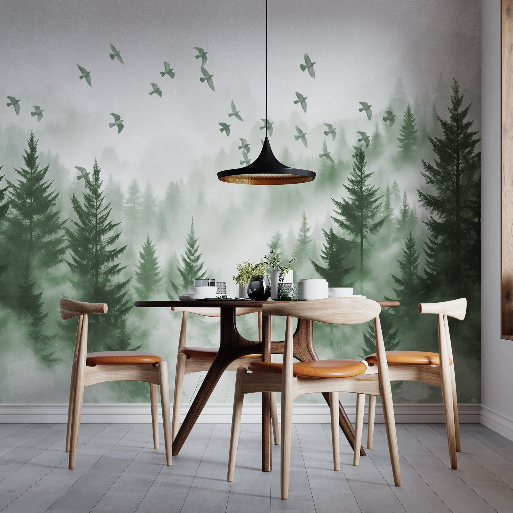 Alakítson át bármilyen teret a varázslatos “Birds Flying Over a Forest” falfestménnyel. Képzelje el, hogy minden nap egy nyugodt, ködös erdőre ébred, ahol minden részlet békét sugároz. Ezek a fent szárnyaló kecses madarak varázslatos és szabadságot varázsolnak a falakra. Tökéletes hangulatos szobákba vagy élénk társalgókba – bárhová, ahol jól jönne egy csipetnyi természet bája. Ráadásul ki ne szeretné magát egy álomszép erdei menedékhelyen érezni minden alkalommal, amikor belép? Könnyen alkalmazható és biztosan irigylésre méltó, a falfestmény finom zöldjei és nyugtató hangulata elfeledteti Önnel a külvilágot. Ideális az álmodozóknak és a természet szerelmeseinek egyaránt!