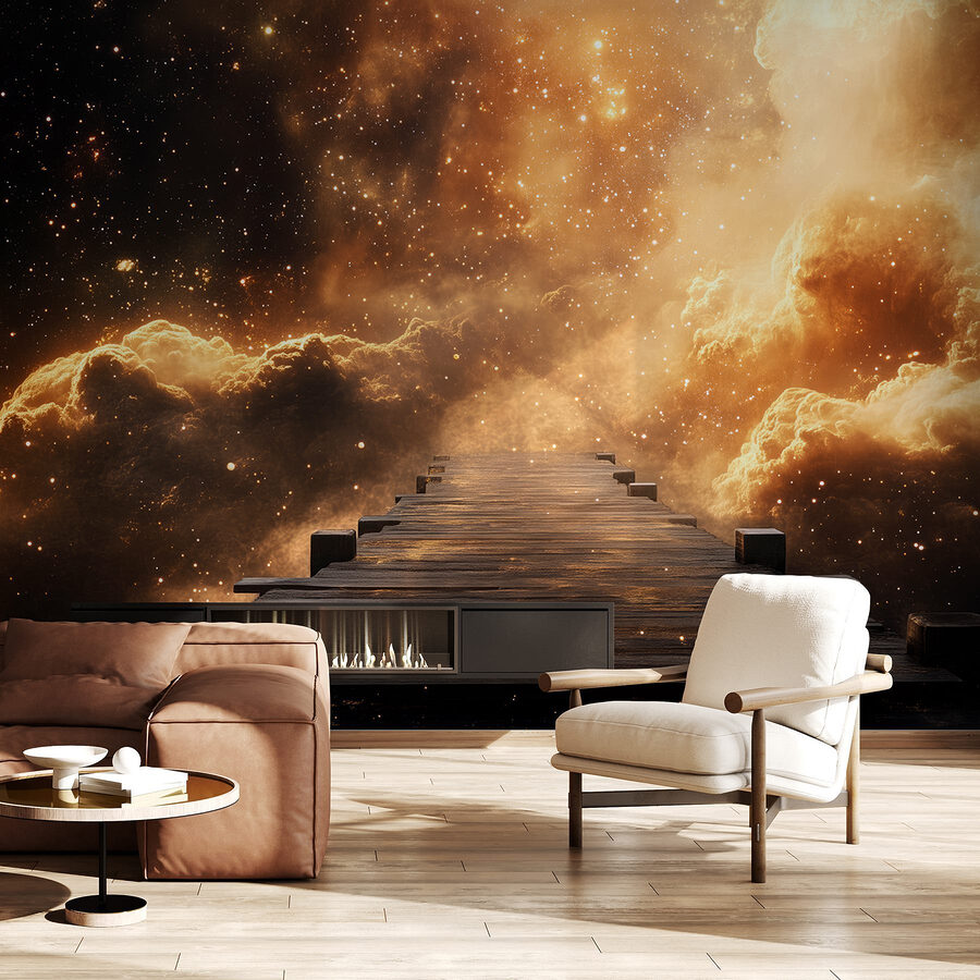 Alakítsd át a teredet a „Felhőkhöz vezető fa híd” faliképpel. Képzeld el, hogy egy kopott fa hídra lépsz, amely mintha egy álomszerű galaxisba vezetne. Ez kalandvágyat ébreszt, olyan érzést kelt, hogy „vajon hova fogok jutni?”. Az élénk színek meleg és hideg tónusokat ötvöznek, varázslatos hátteret teremtve, amely felébreszti a képzeletet. Képzelje el azokat a csendes reggeleket, amikor kávét kortyolgatva a csillagokkal és felhőkkel tarkított eget bámulja – tiszta boldogság. Tökéletes a kreativitás felébresztéséhez vagy egyszerűen csak álmodozáshoz. Ez a falikép könnyed eleganciával rendelkezik, és egy kis fantasztikumot csempész az otthonába. Ki ne szeretne néha elmenekülni a felhők közé?